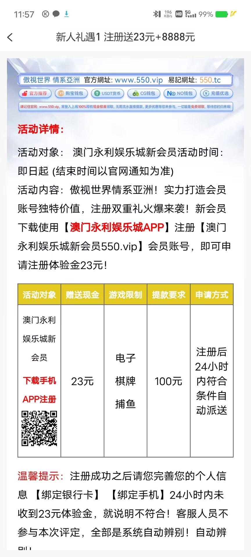 永利送23+5元彩金