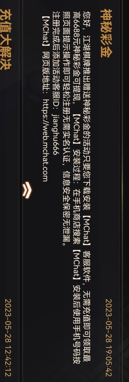 江湖棋牌有号的可以加客服去申请神秘彩金了,我送了388。jh.cc