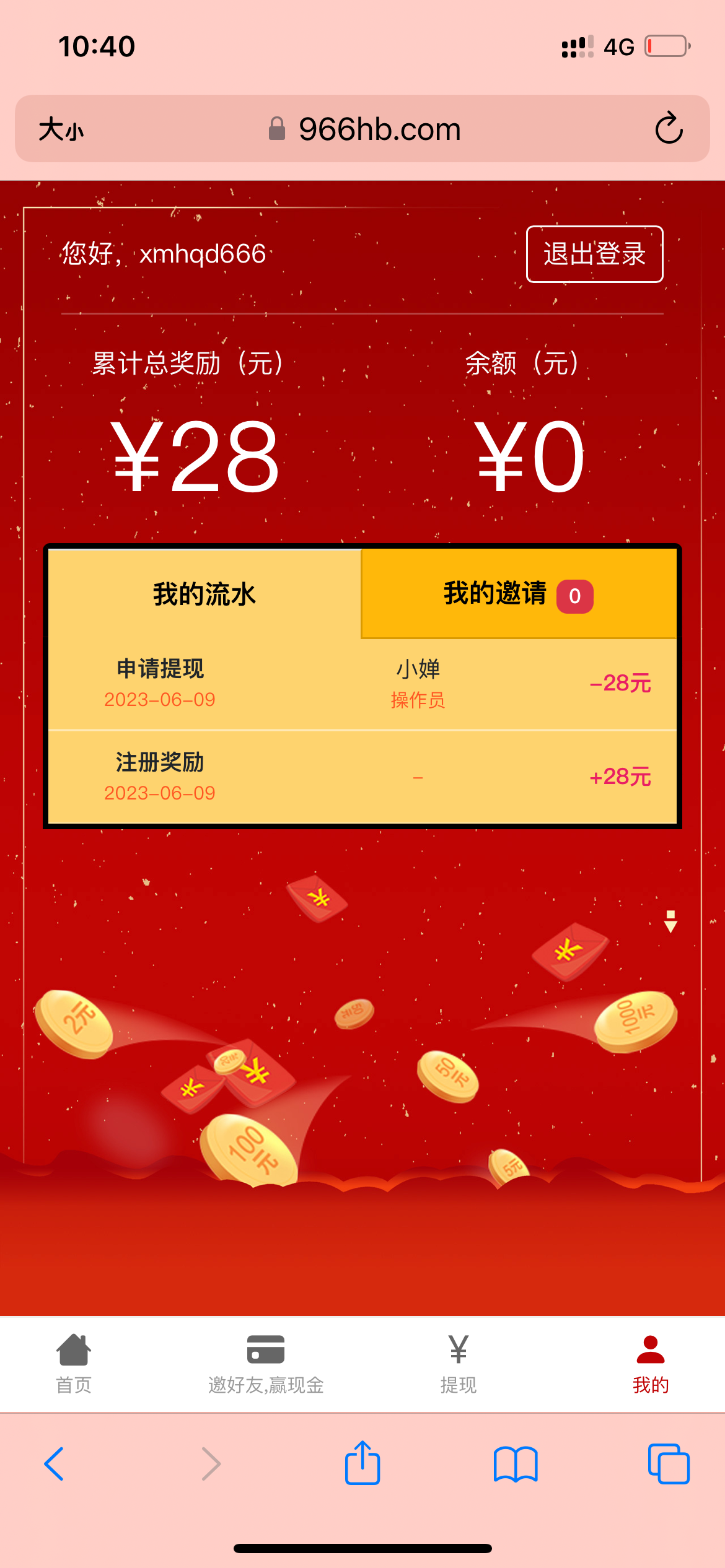 邀请了6个人,前后不到10分钟,找狗装申请邀请红包,结果红包账号不存在了,哈哈,狗庄牛逼