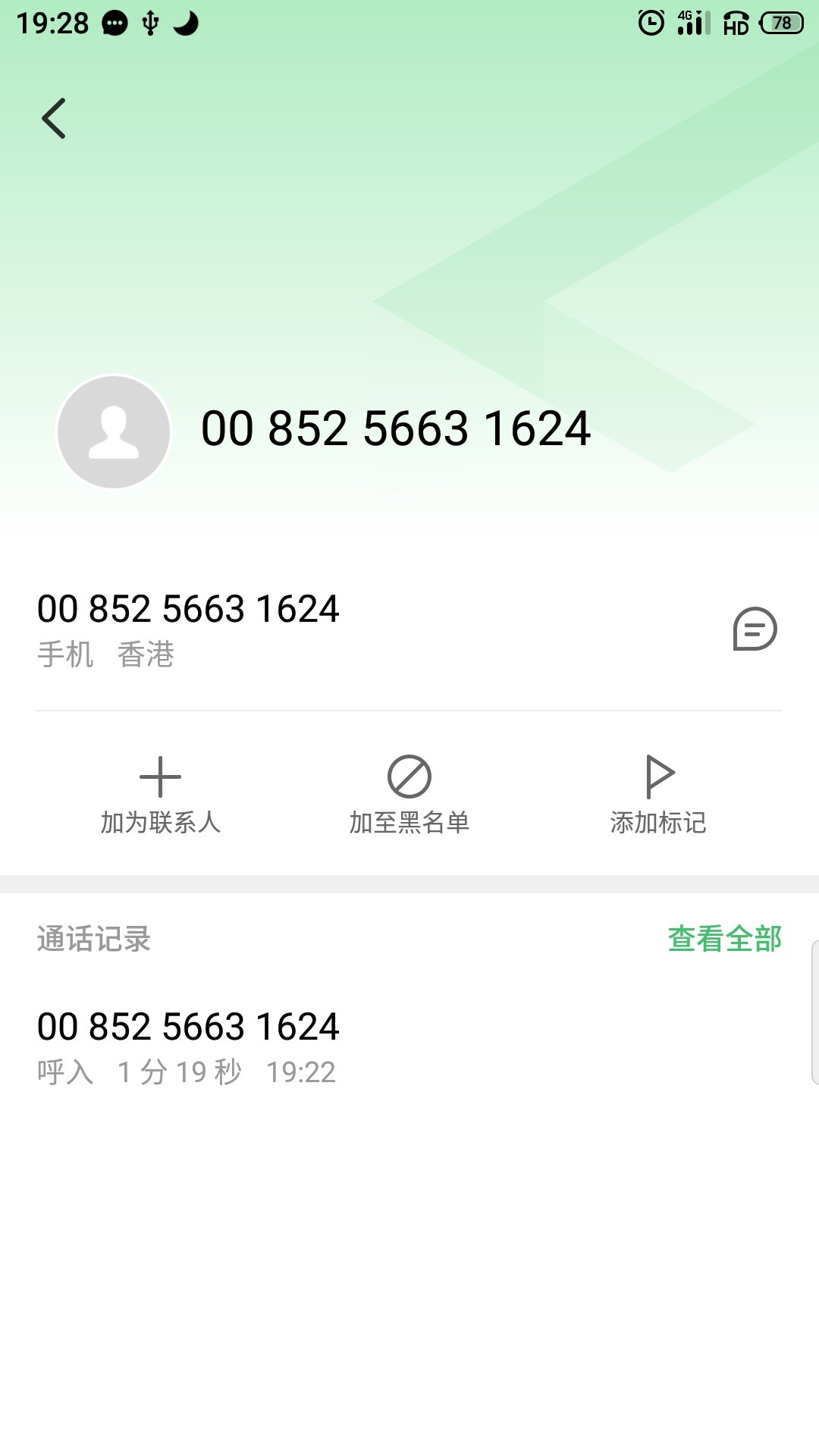 短信我没有,因为他给我发的电话,问我要的电话来电截图