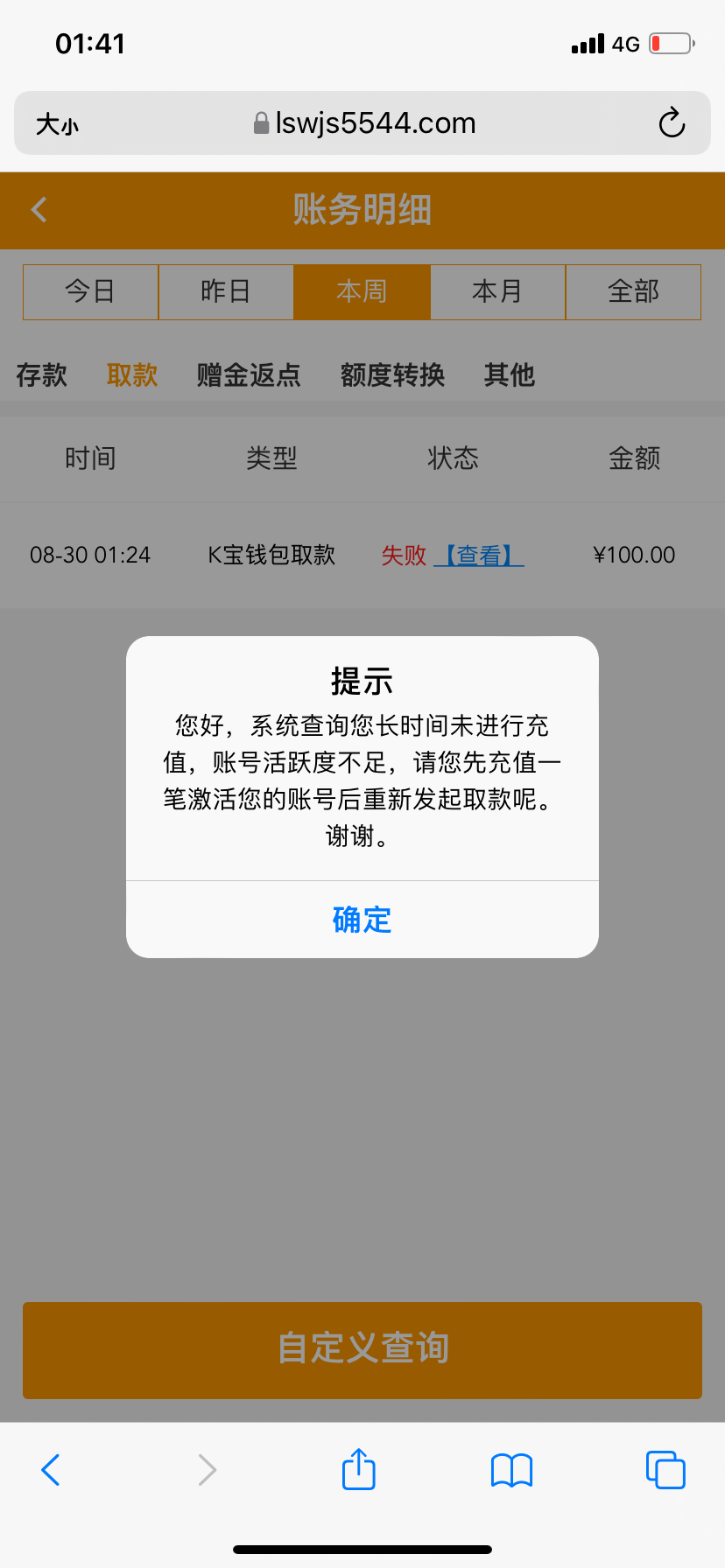 最低就是100,我在别的台子打的充进去的,提款也是成功了
