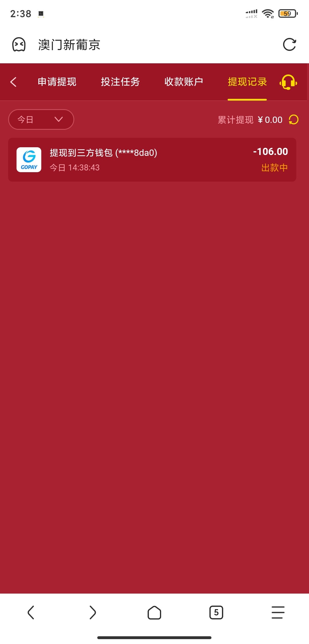 提现210到账