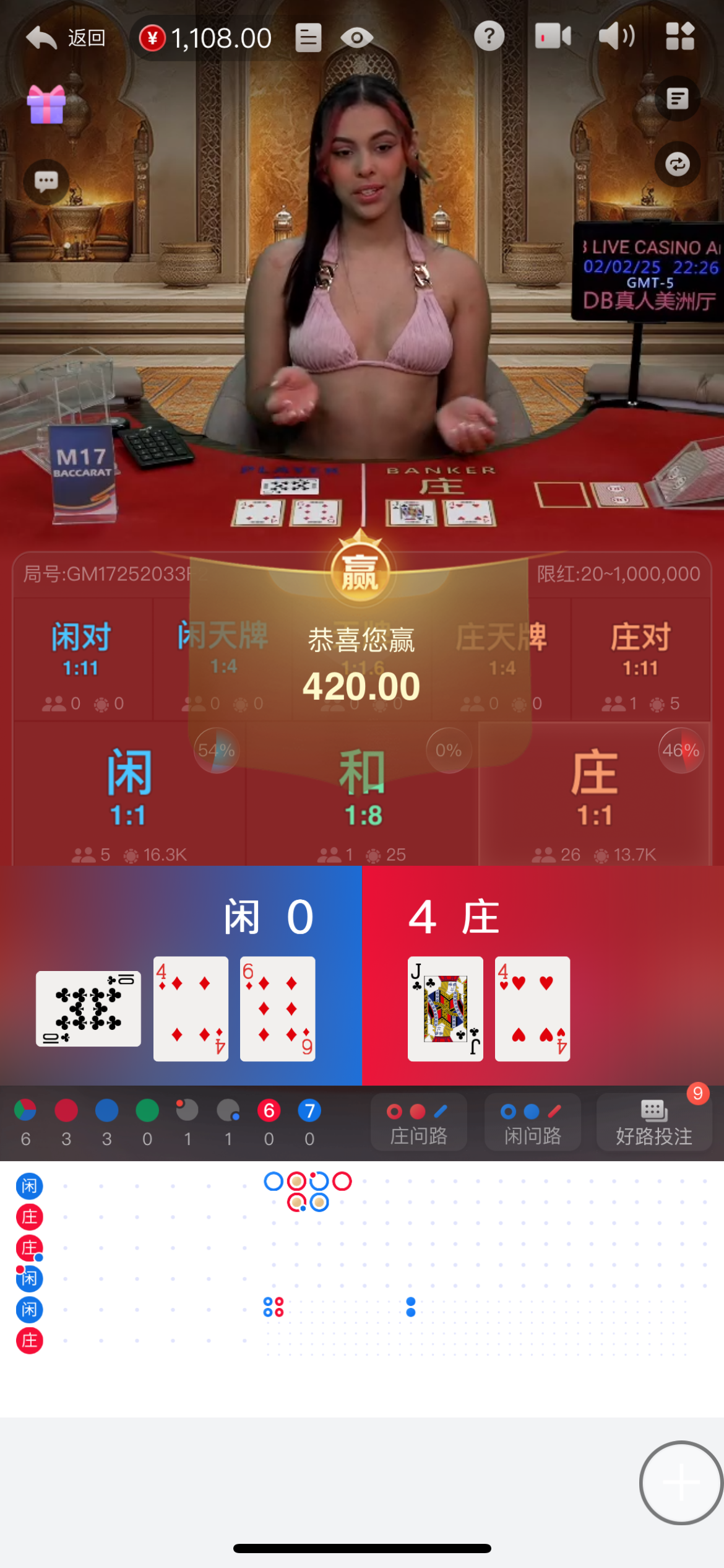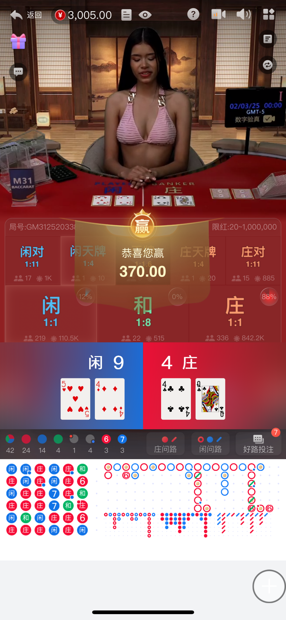 老哥这么稳吗 4点吃3点,1点吃0 还搞三个三拿9点 不叫你赌神不得了
