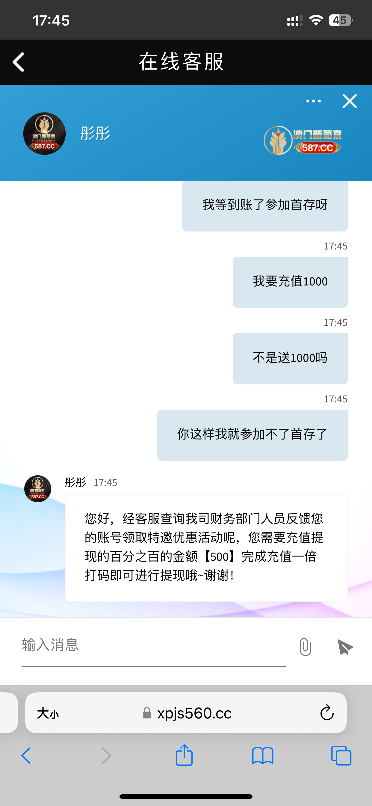 这种情况能上吗老哥们 我说好话忽悠半天客服结果告诉我要充值同等金额 电话特邀送了18打到500体现