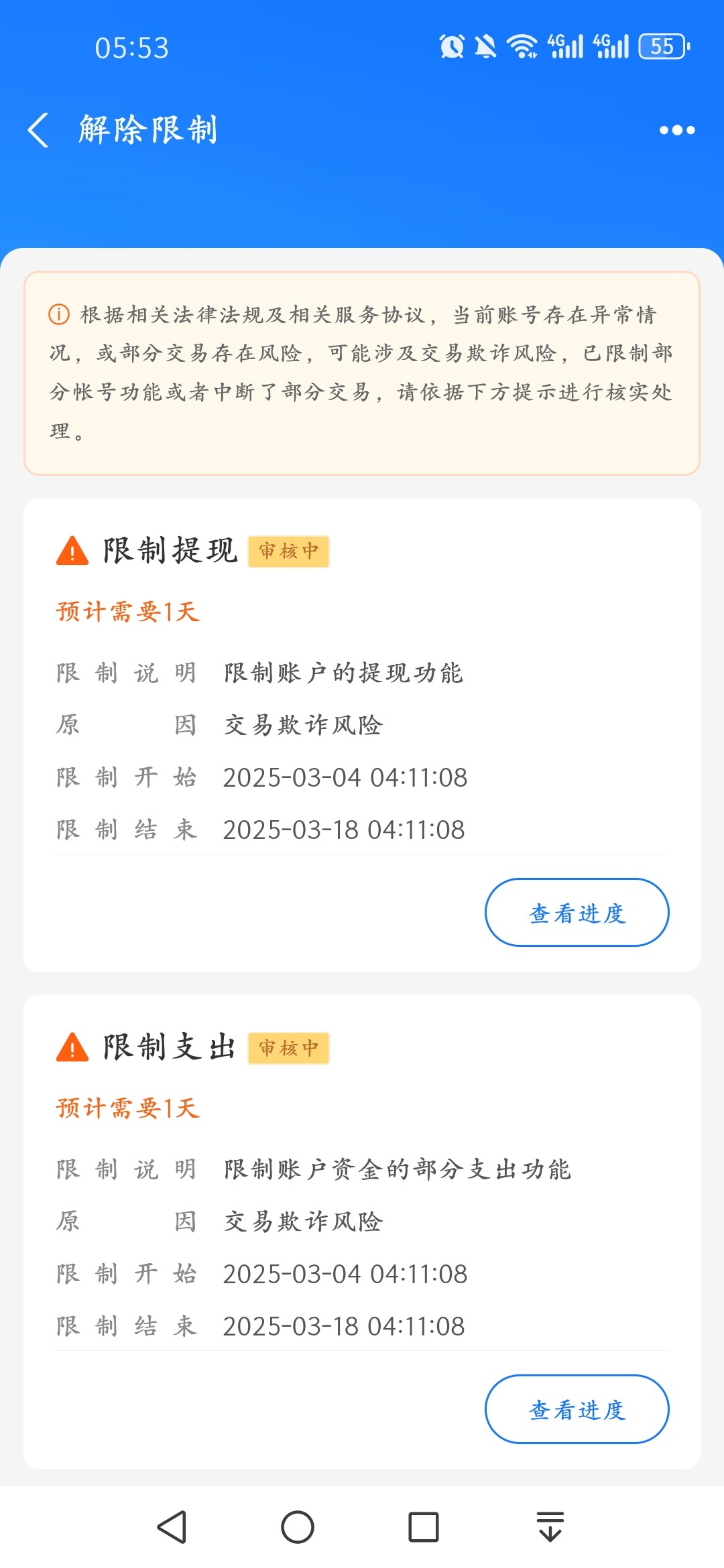 批图,线下交易记录和订单,半小时就解封了,我封过半年批图解封了