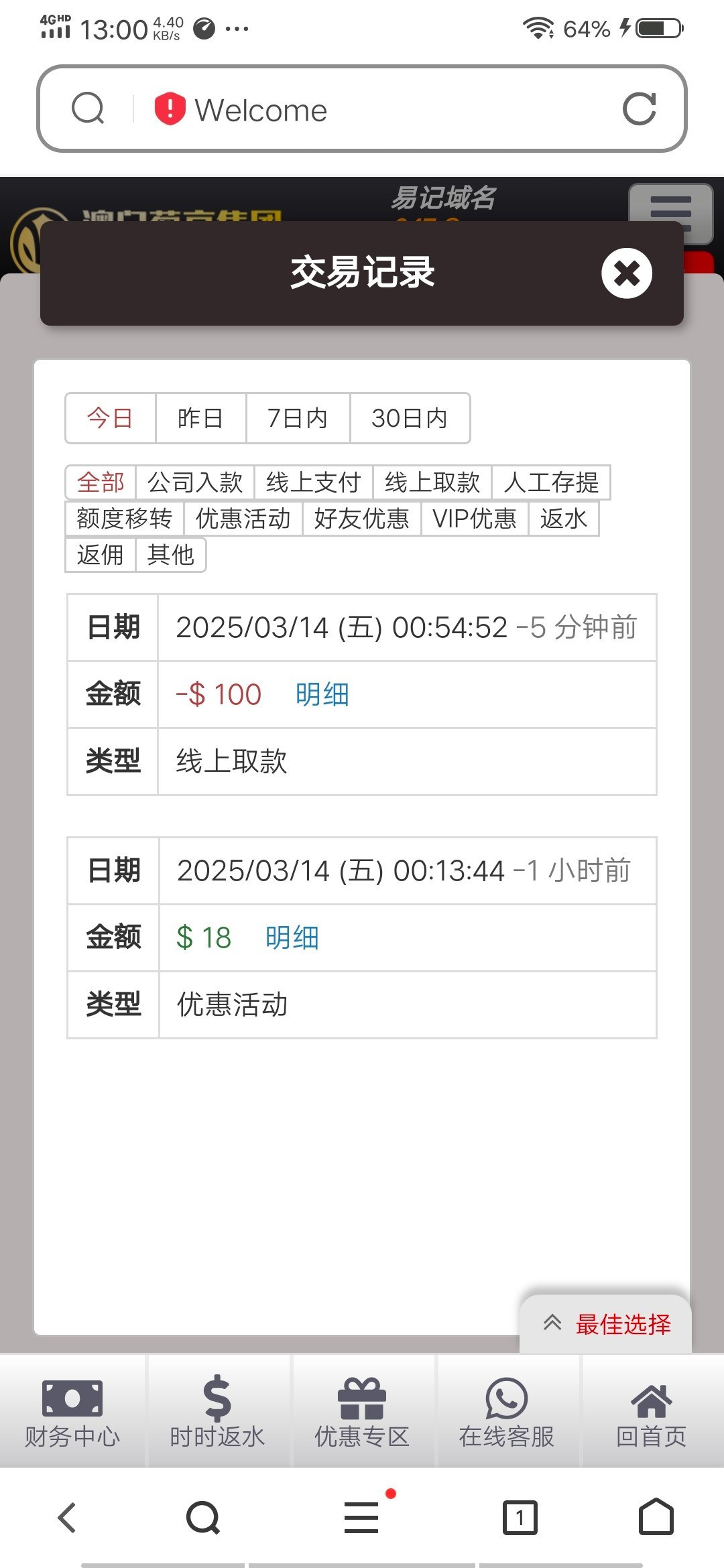 电话特邀回归彩金18元
