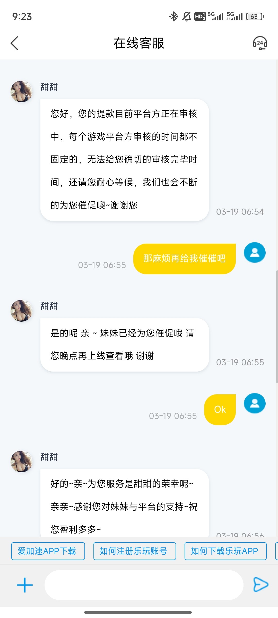 沃日,难道这系列都是黑台,近一周被黑了3次了,很多老哥说为什么要玩野鸡,因为我喜欢打首存,昨天博牛100下了1.5k。这个乐玩100+88,提现1200无限待审核12小时了,逛了下论坛很多老哥都说黑,希望能出吧