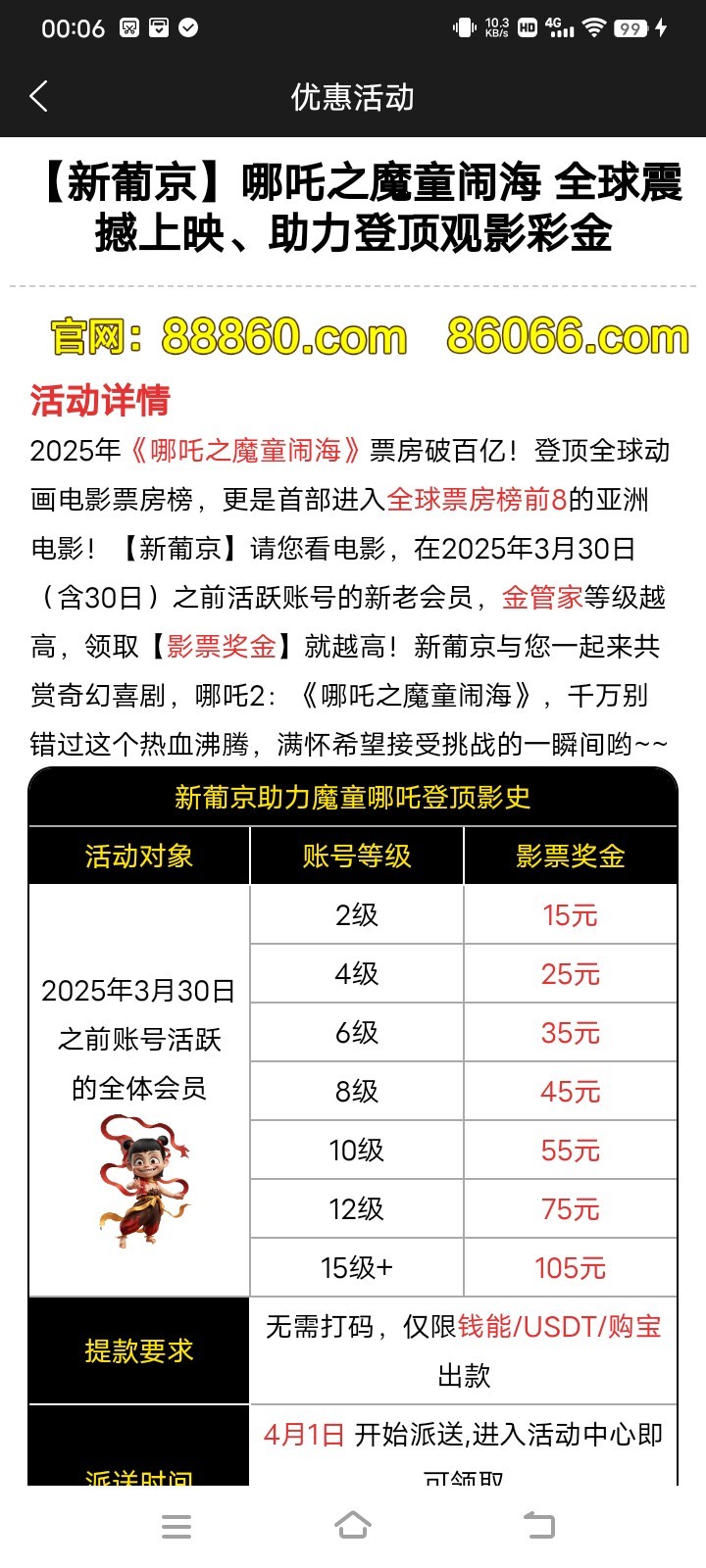 不用票,有等级自动送