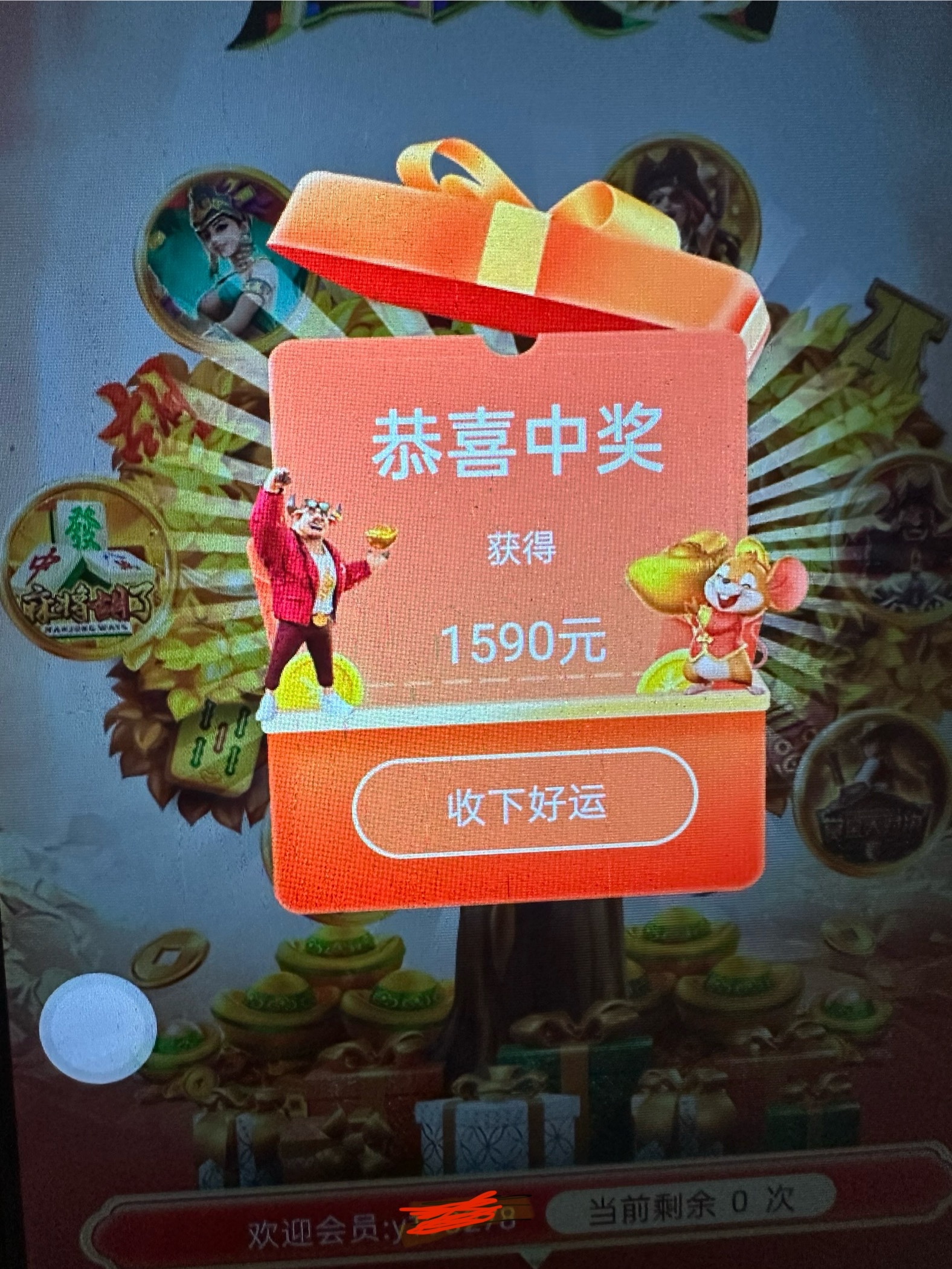 昨天充值50打1000流水今天睡醒点一下给1590,第一次出这个,平时都是十几二十块