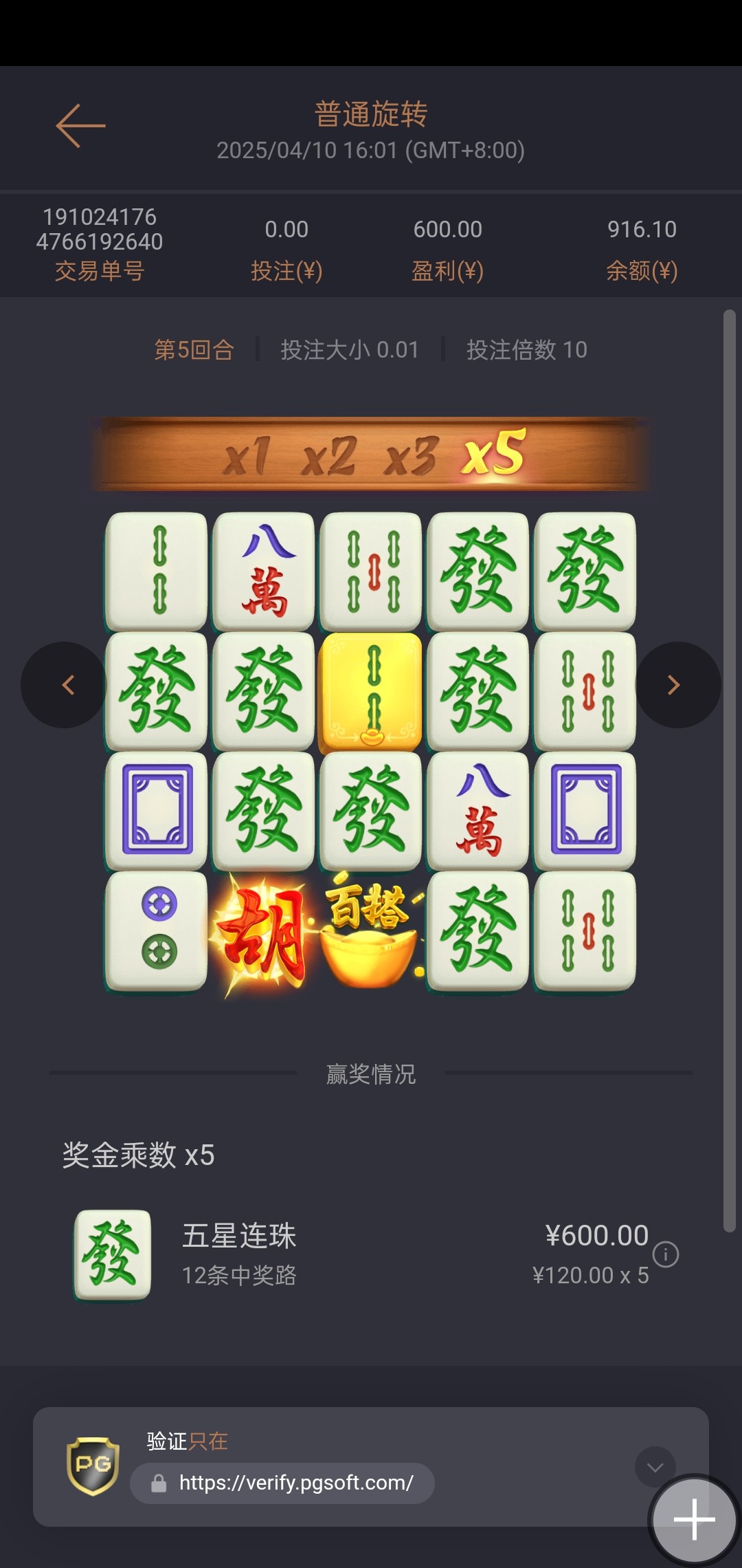 1*2*2*3*1*5*100*0.01*10=600,看图应该能看得懂吧,100是发财5路的倍数,0.01*10就是你投注2块的1/20,也可以是2*2*3*5*100*2÷20=600,说了这么多可以申请一个猪脚饭吗,大哥一路长虹