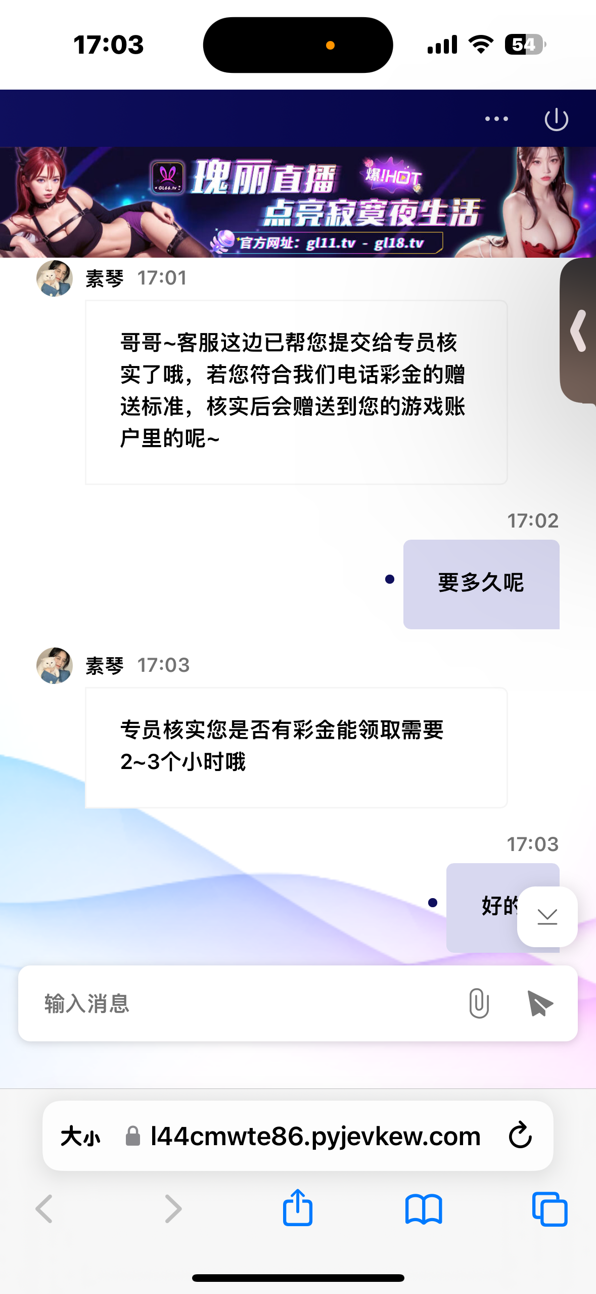 之前看老哥发的碰瓷到了88彩金,今天又打电话同一个手机号领到了88彩,自己去试试 gl11.tv