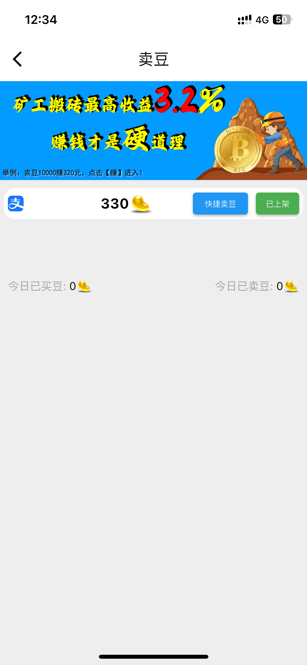今天去卖豆看到有个快捷卖豆,去试了下,卖豆秒到账,不过要扣百分之2手续费,卖330豆扣了我7块手续费,汗,不过到账是真的秒到账。有老哥们在用吗?