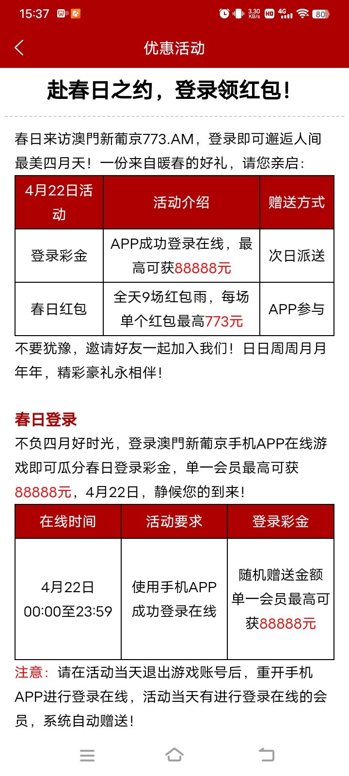 精彩系部分回馈彩金