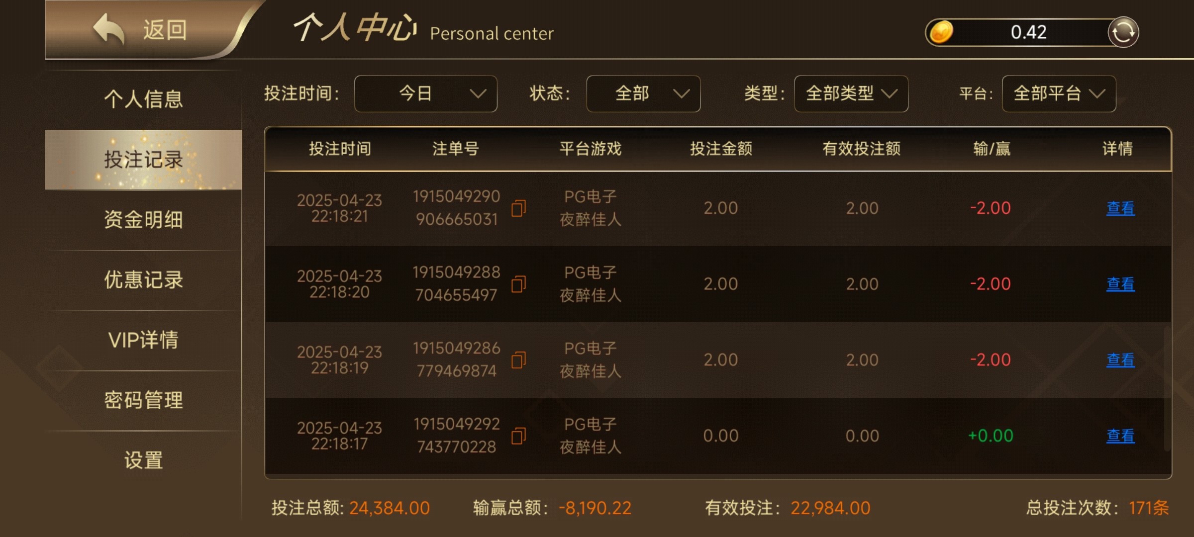 无谓 我也一样 几天白嫖两千多今天一天输完,他妈的最艹蛋的是自己都没怎么用 都送回去了