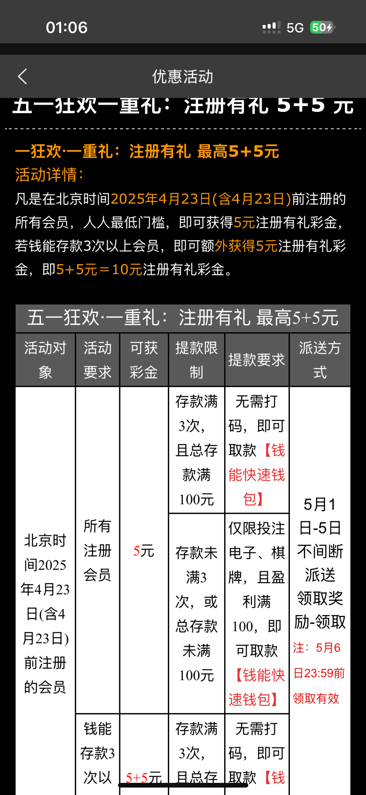 161的五一回馈彩金