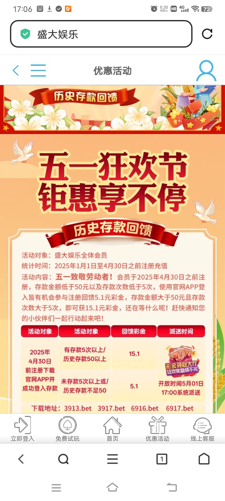 盛大娱乐五一回馈彩