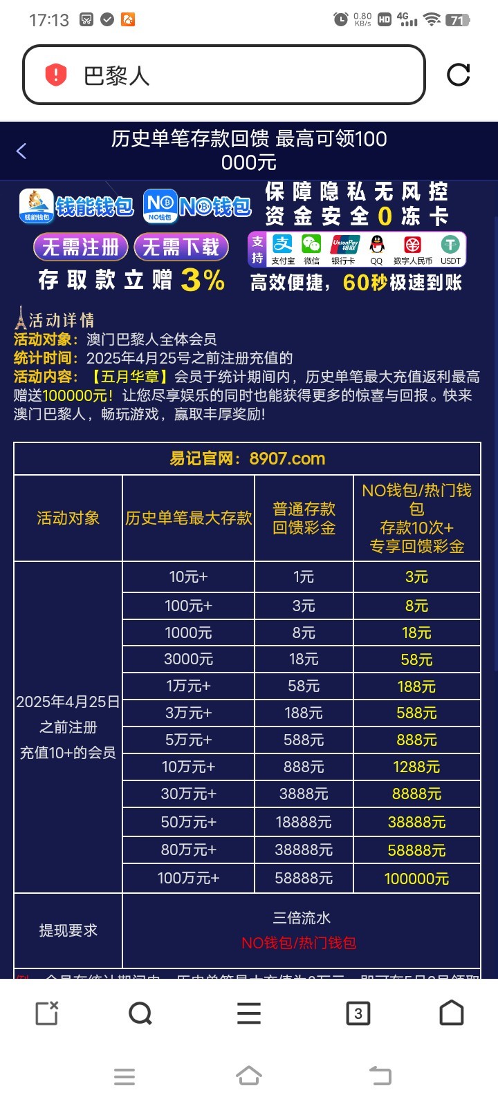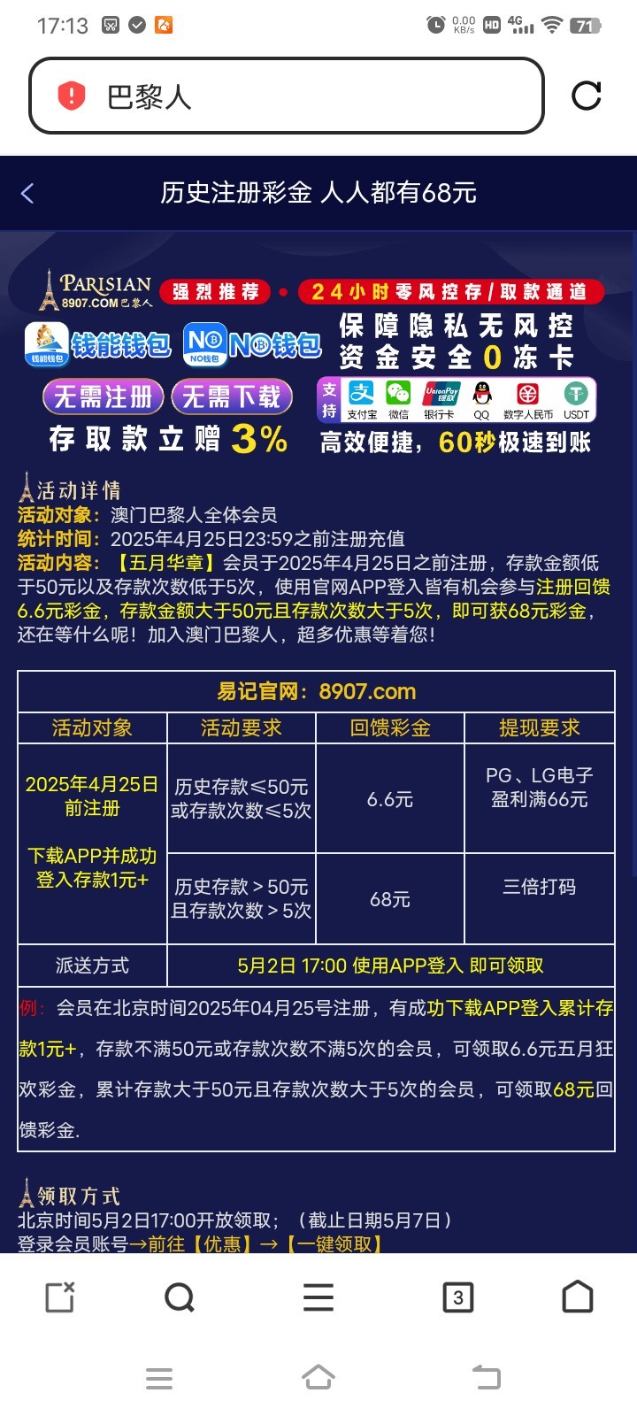 巴黎人8907五一回馈