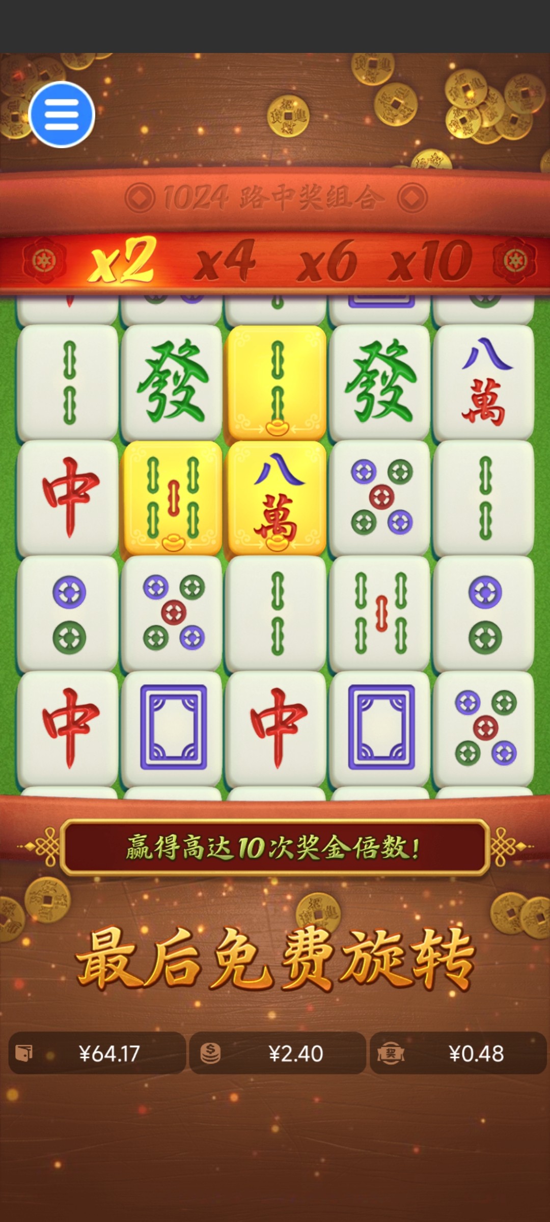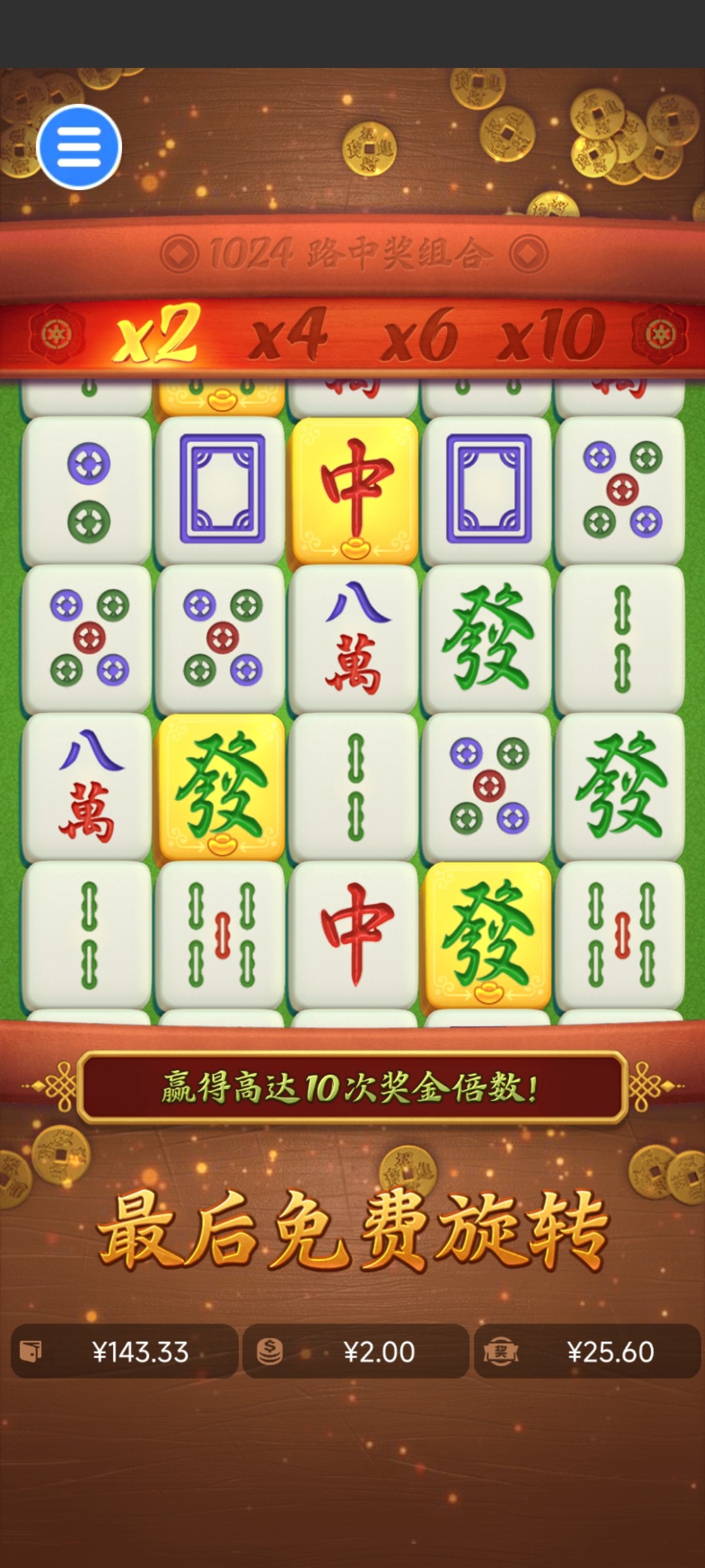大水,进了三次免费,第一次0.8,第二次1.2,第三次也是1.2,都在百倍以上,第三次是差30块钱的时候进的,想着给个30,没想到给个300倍,图片没截屏