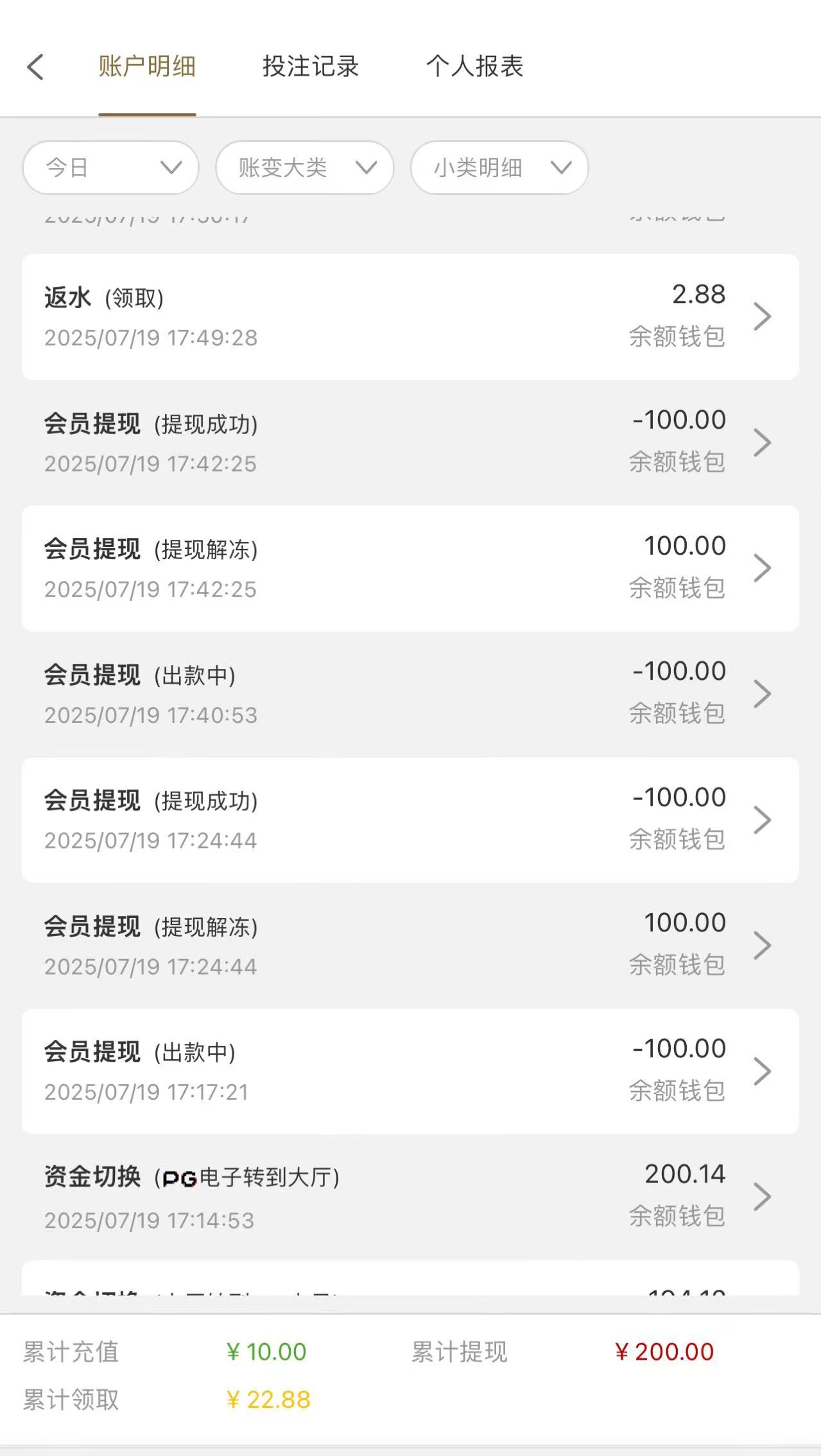 20块钱打20流水