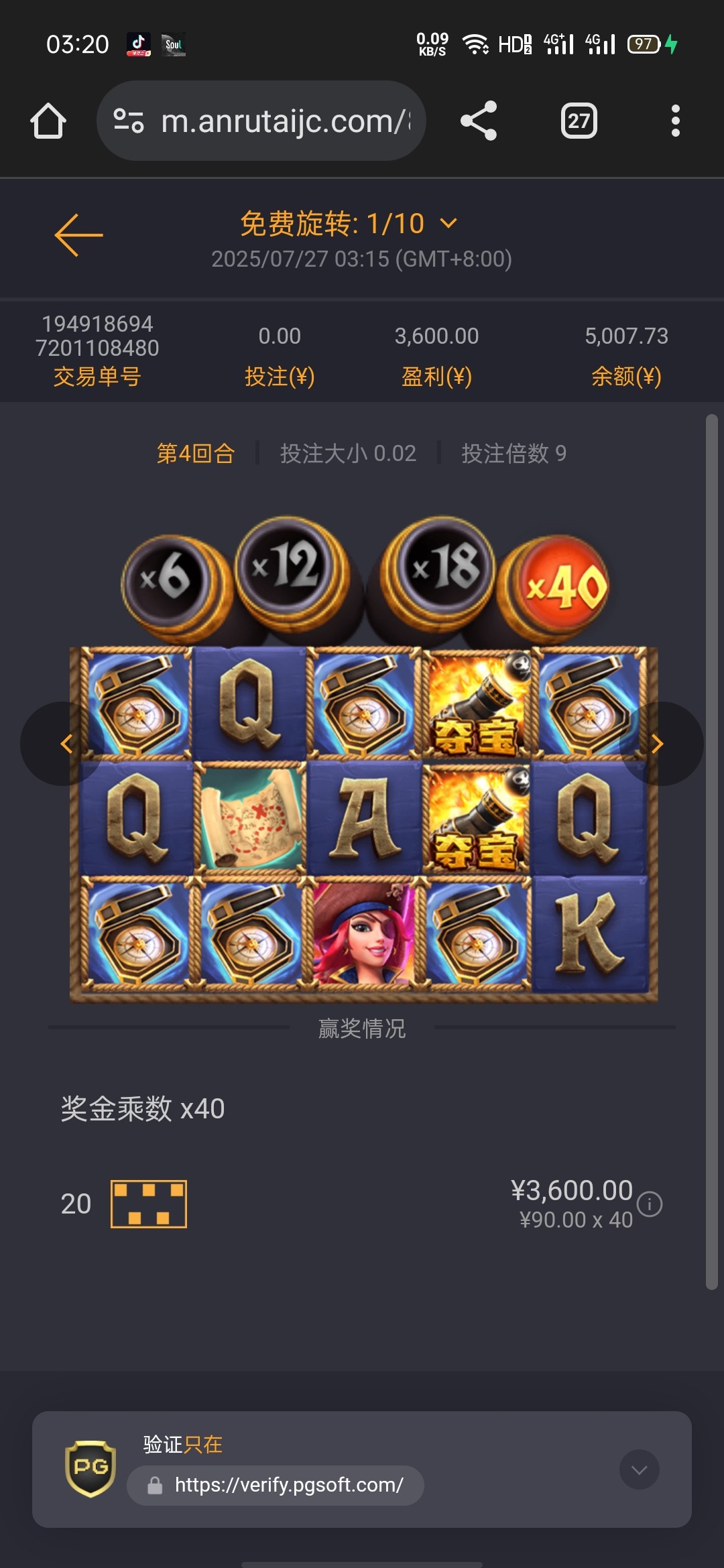 3.6女王爆4k多 2.5少林足球爆1k多,提了7k,怎么拉都爆