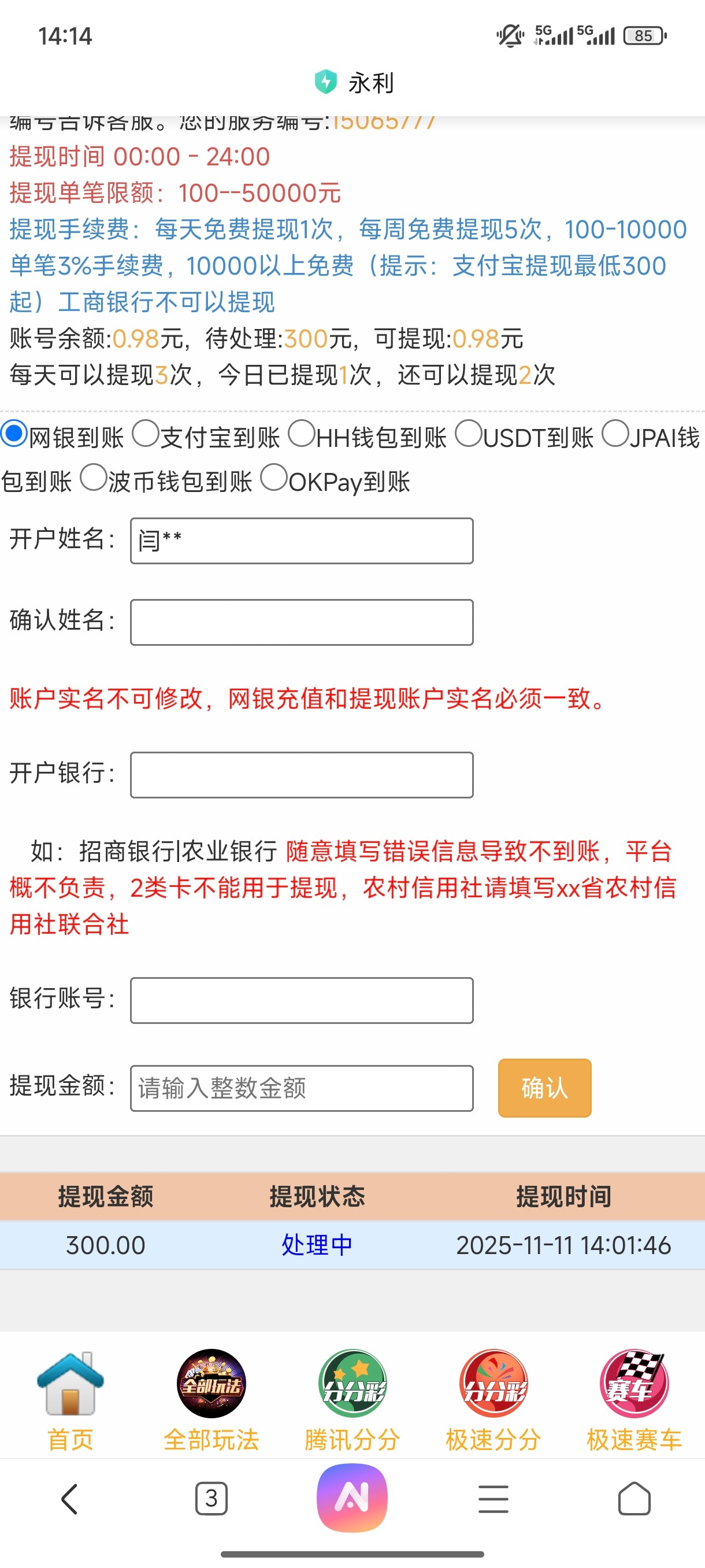 永利提现充值能充不