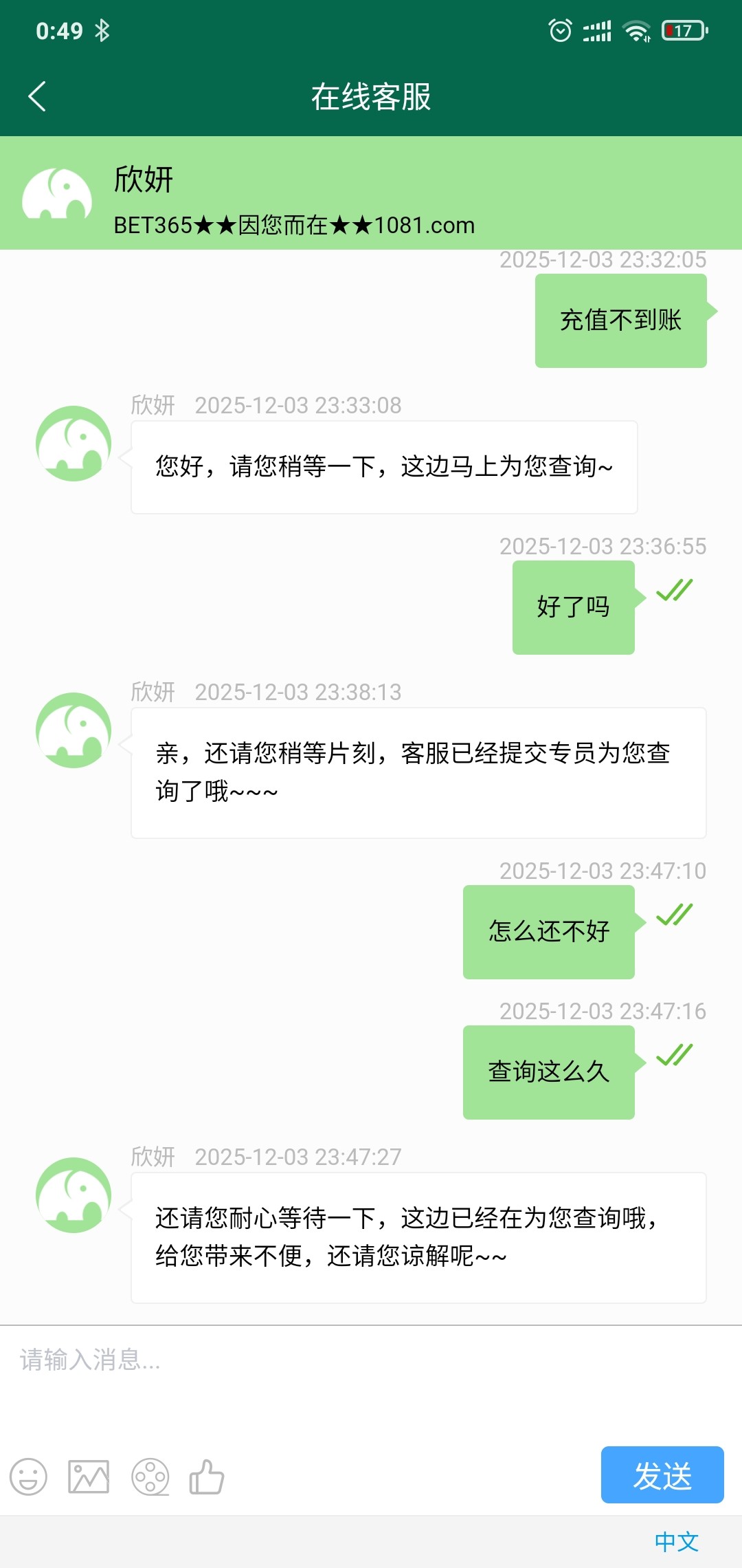 充值不到账能处理一个多小时还没弄好,垃圾玩意