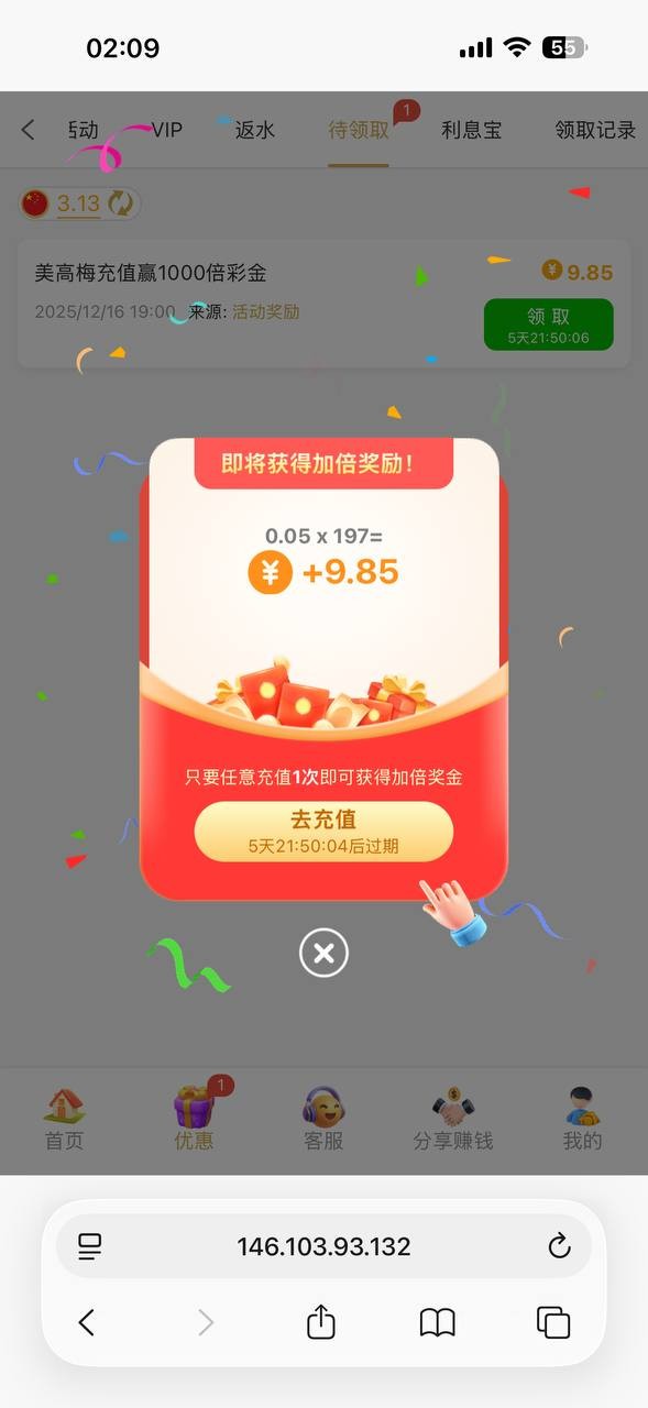 老用户历史有充值登录领取彩金,有就有没有无视吧