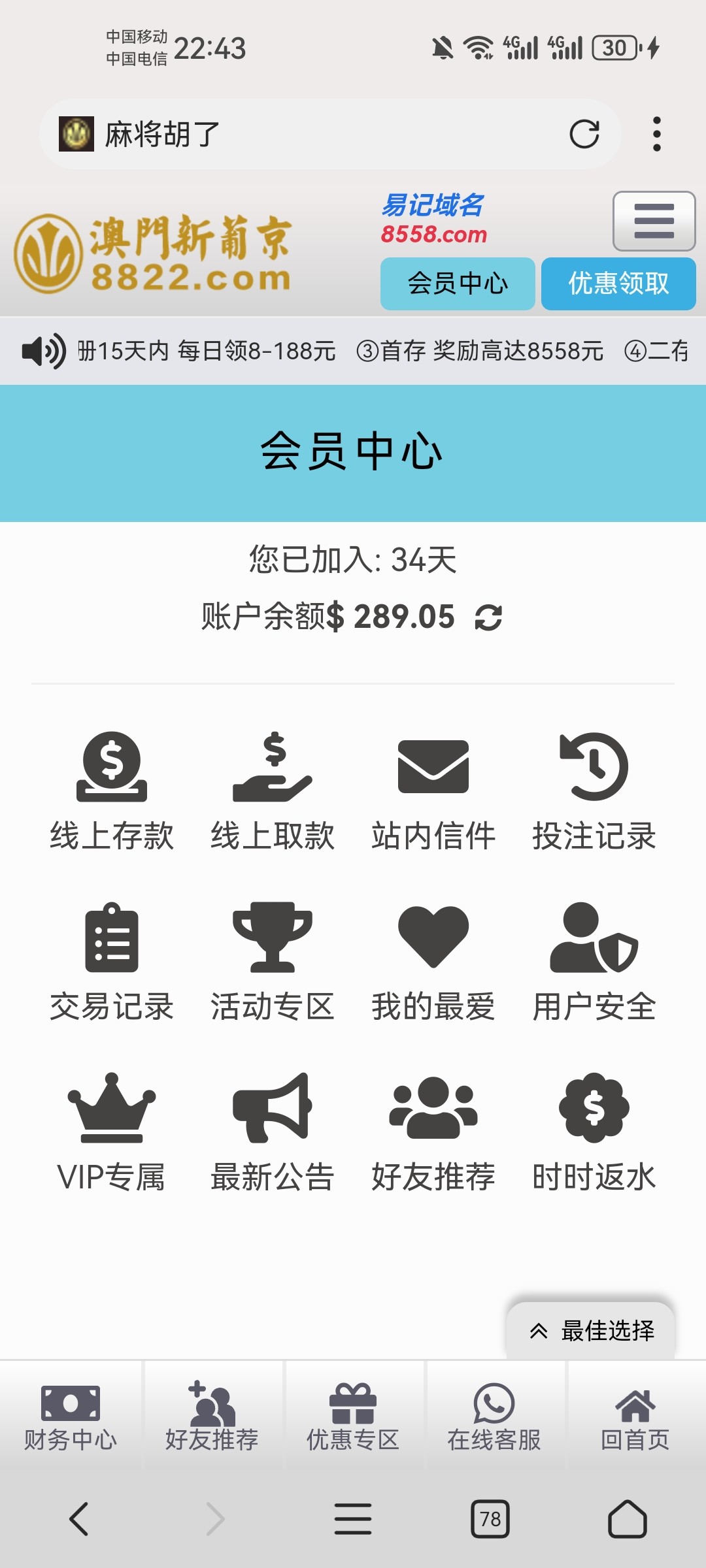 8822威尼斯人改名新葡京,没充值过的有8.6彩金,限制pg,lg,wg电子,188钱包出款最低最高188,我8.6打了289,只出了188