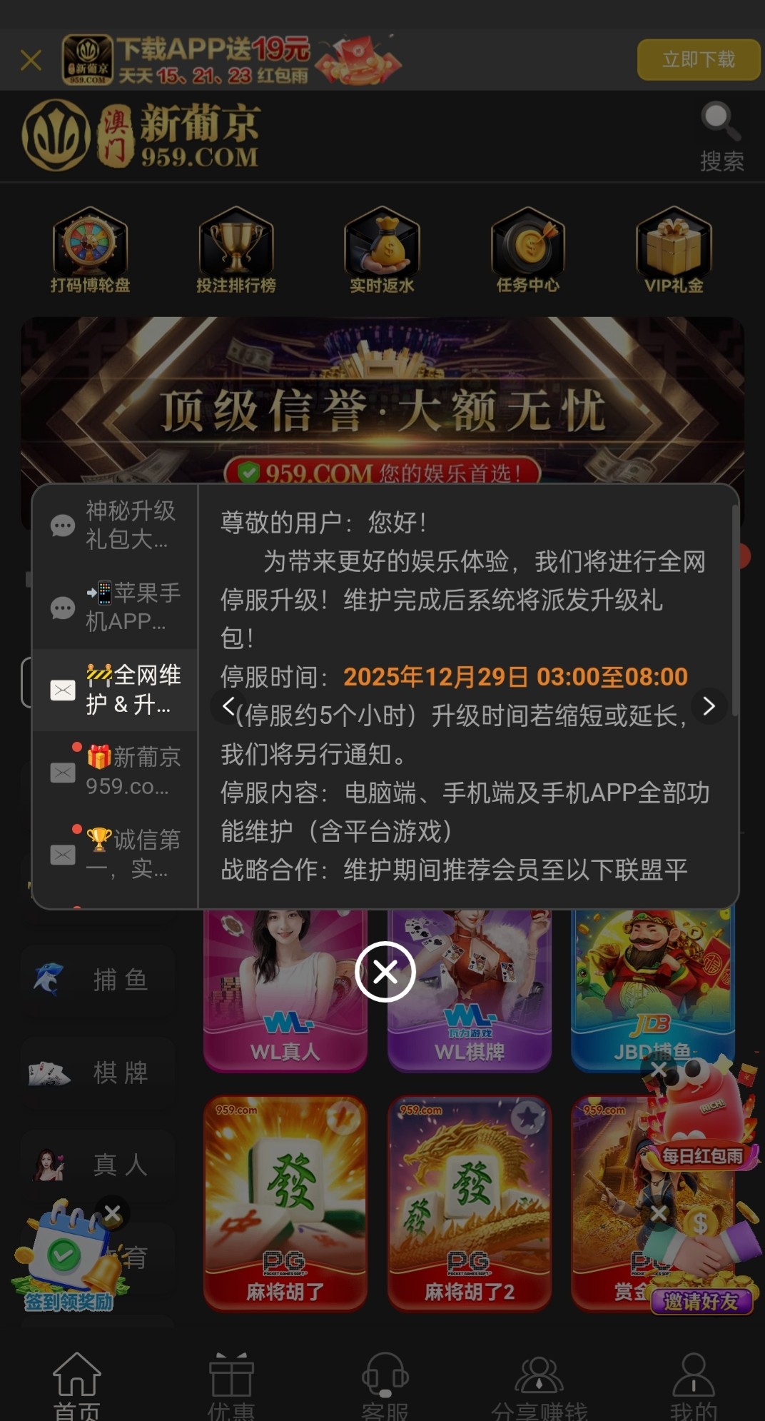 老用户有号登录看看有没有维护彩金吧,wg模板维护登录彩金活动