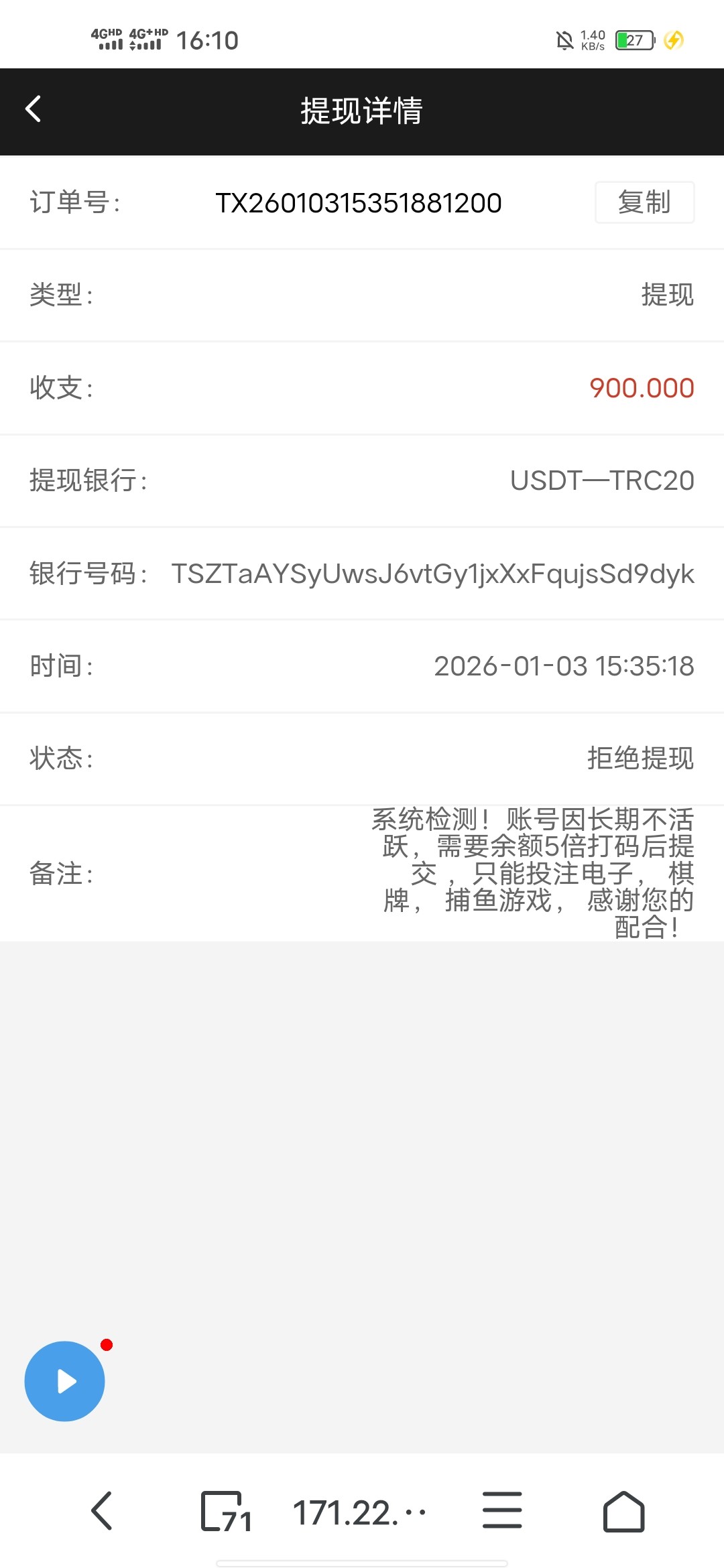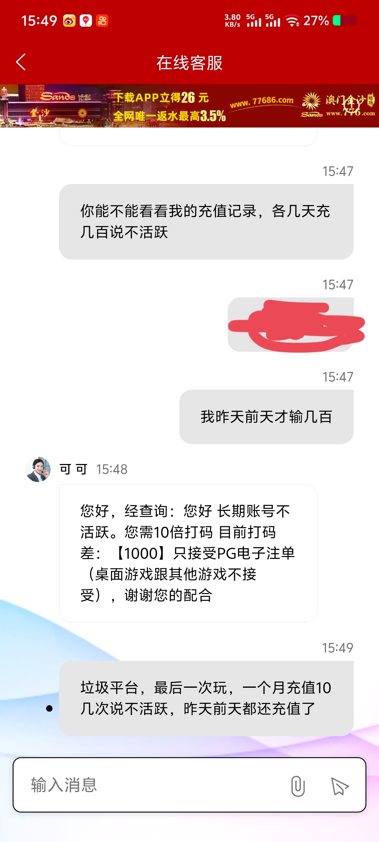 别问,776就是这样,只要1天不充值,领了彩金超过30他就罚