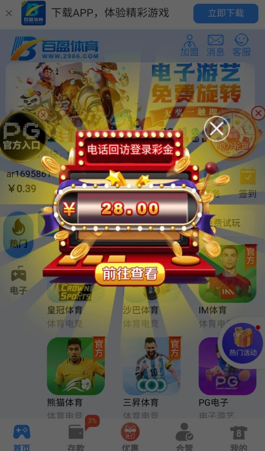 冲值过刚登陆自动跳出来送了28,有号登录看看 链接2906.com
