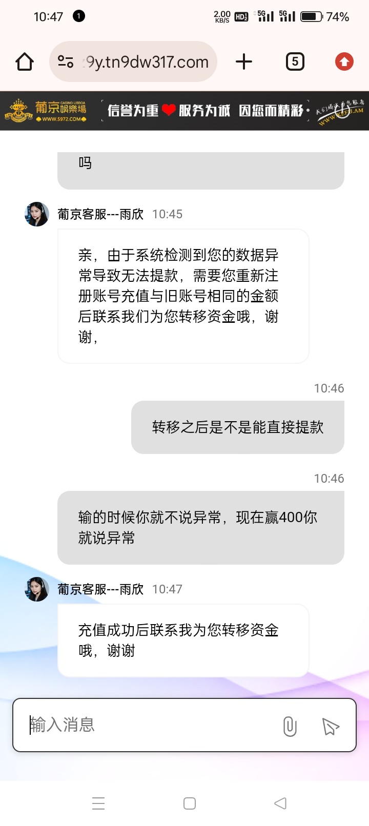 不会吧,这个公司我天天玩,出过最高几万吧,也是赚钱的,也没卡我,这几天维护了,应该是换服务器或者是搬家了吧。但是我出款还是正常的,你什么原因不给你出款?几百我觉得这平台不会黑吧。