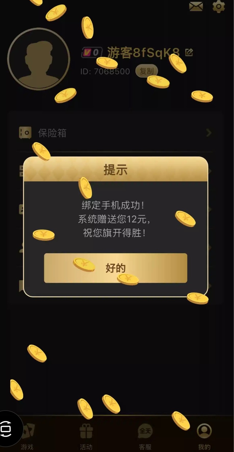 接到电话下载app,进去点我的,右上角绑手机秒12,不知道黑不黑,白嫖勿充值 网址354437.cc