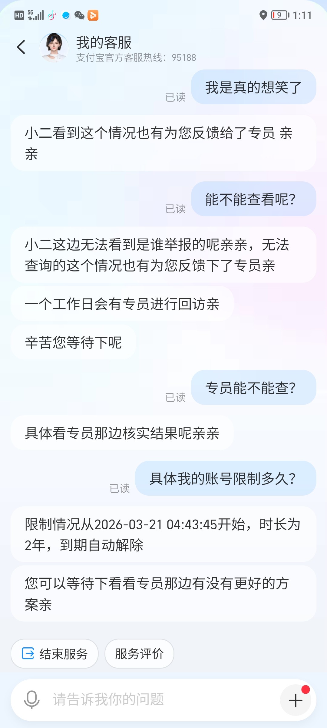 牛逼100块投诉封了两年,我前面一笔500前面卖的过一个月后被投诉,第一次被投诉直接封半年,风控真恶心