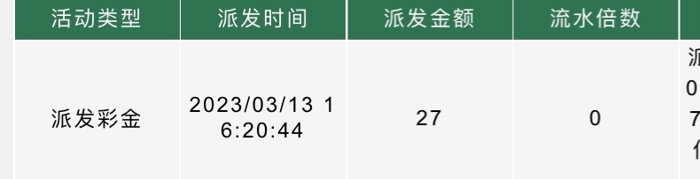 417今天的回馈是2月13日到3月13日的流水回馈中间没有充值打流水的兄弟们可以不用去了