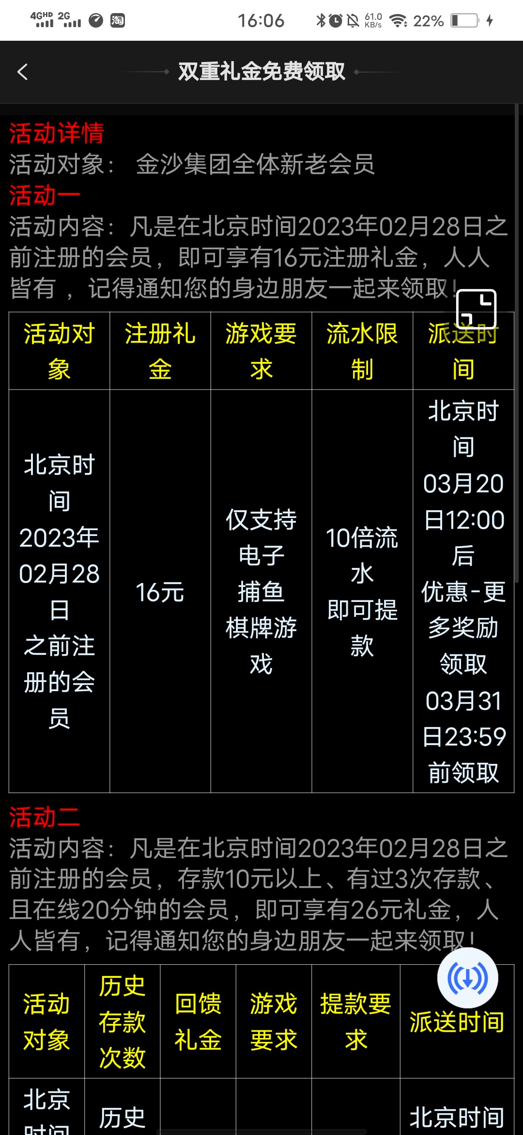 白嫖16历史注册彩金