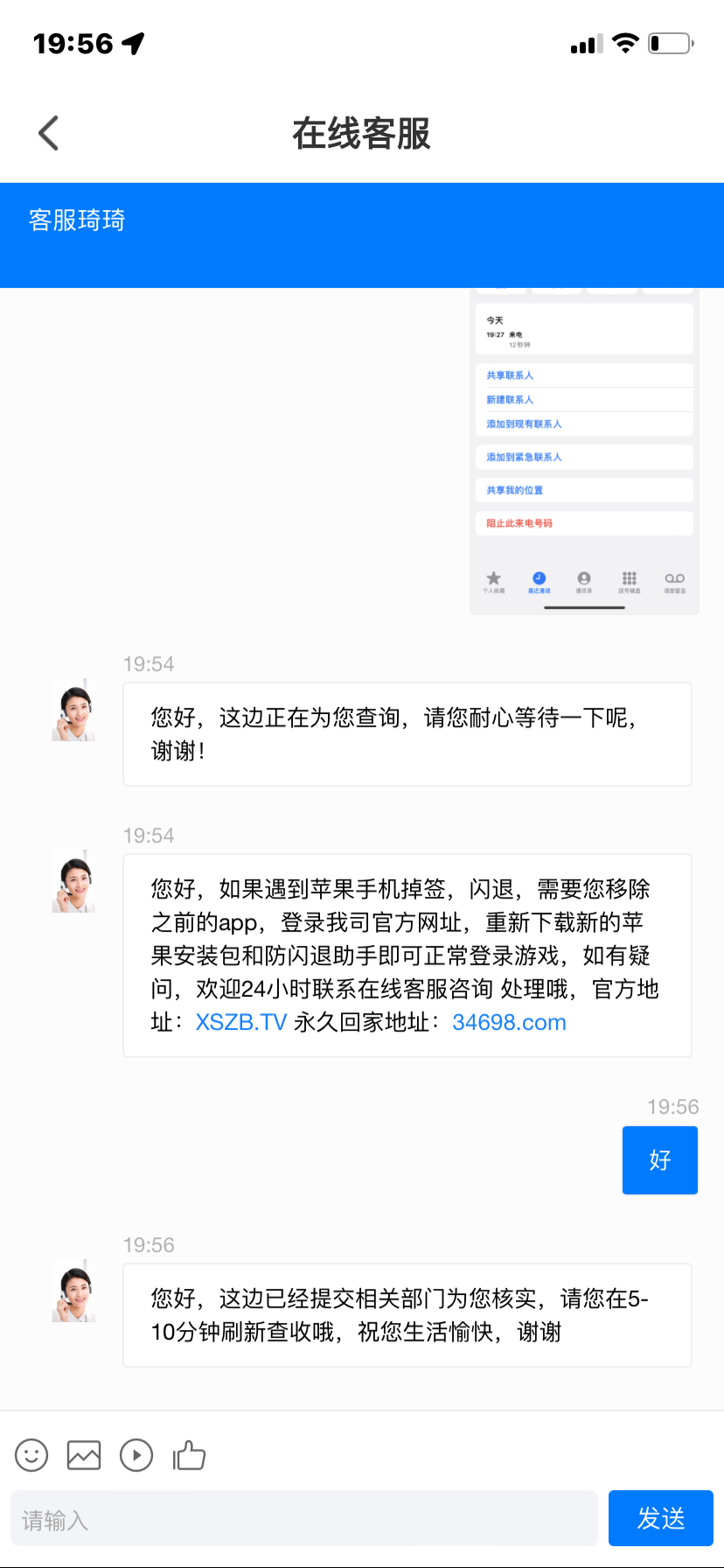 随便找张截图发给客服就行了