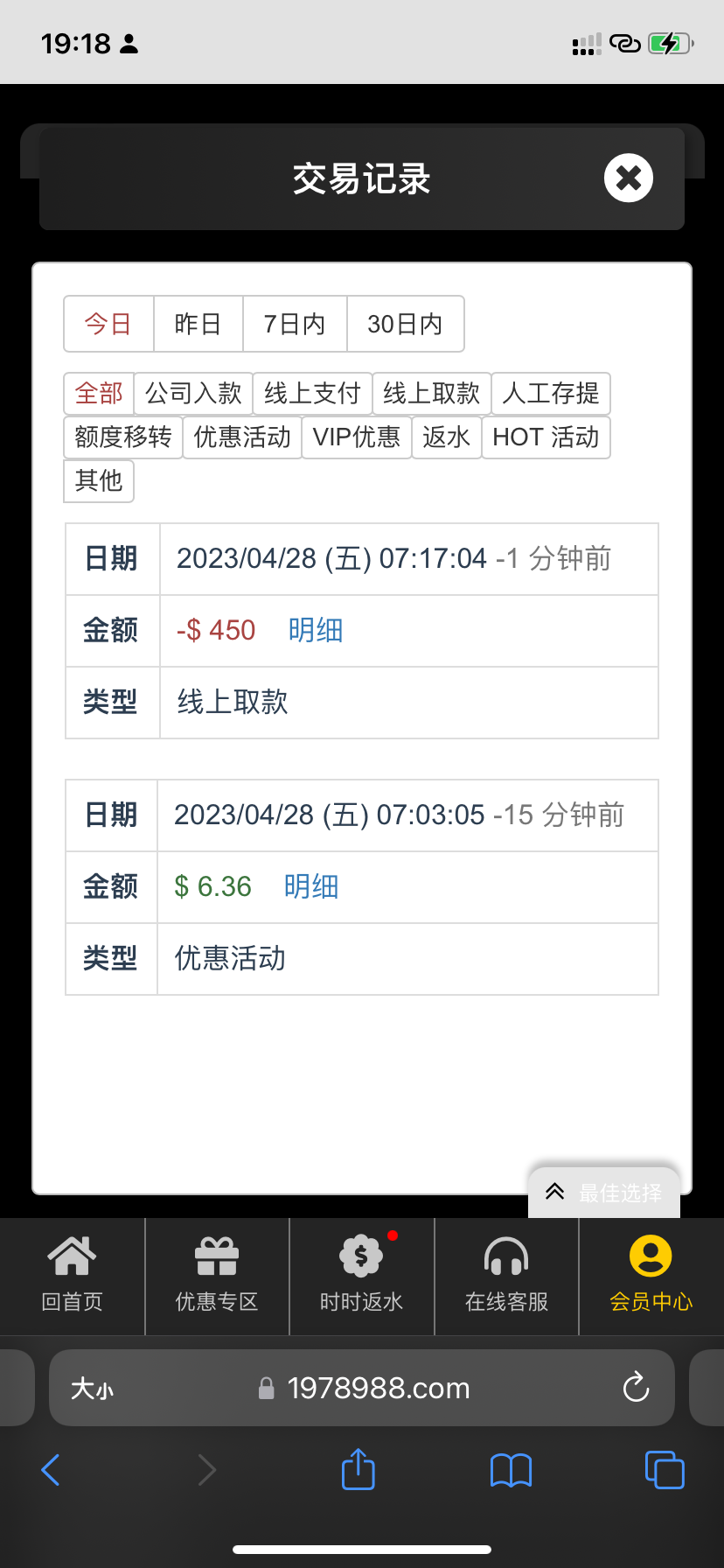 6块钱上450,刚提现不知道能不能到!
