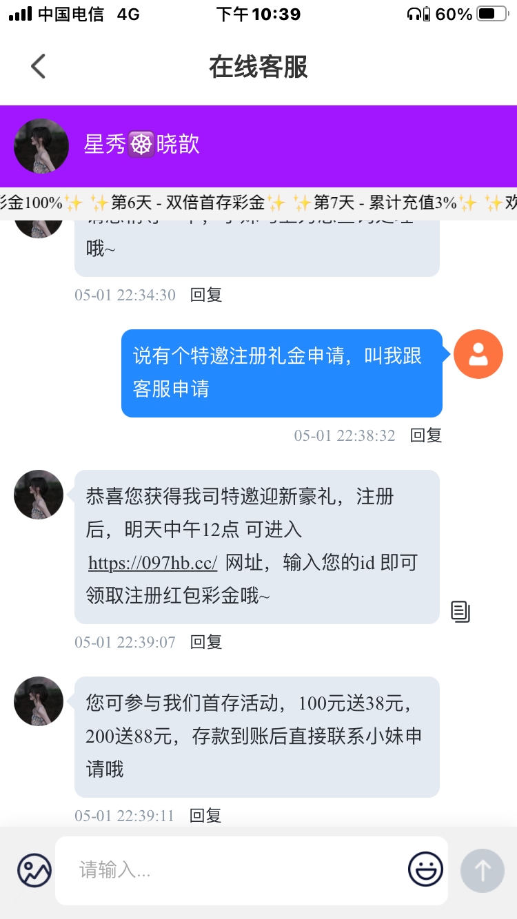领取回归免费彩金,电话客服让我说的