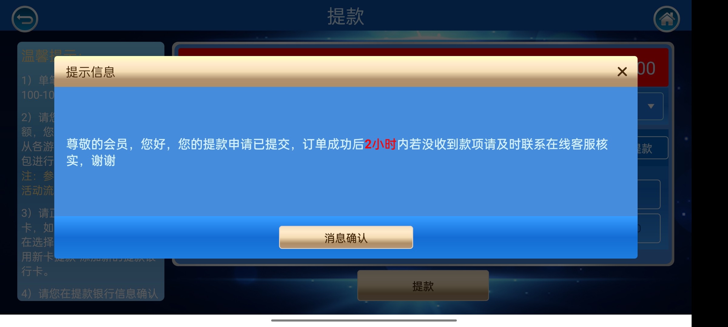 我打到400,提款他妈点快了点了确认了,它显示成功服了