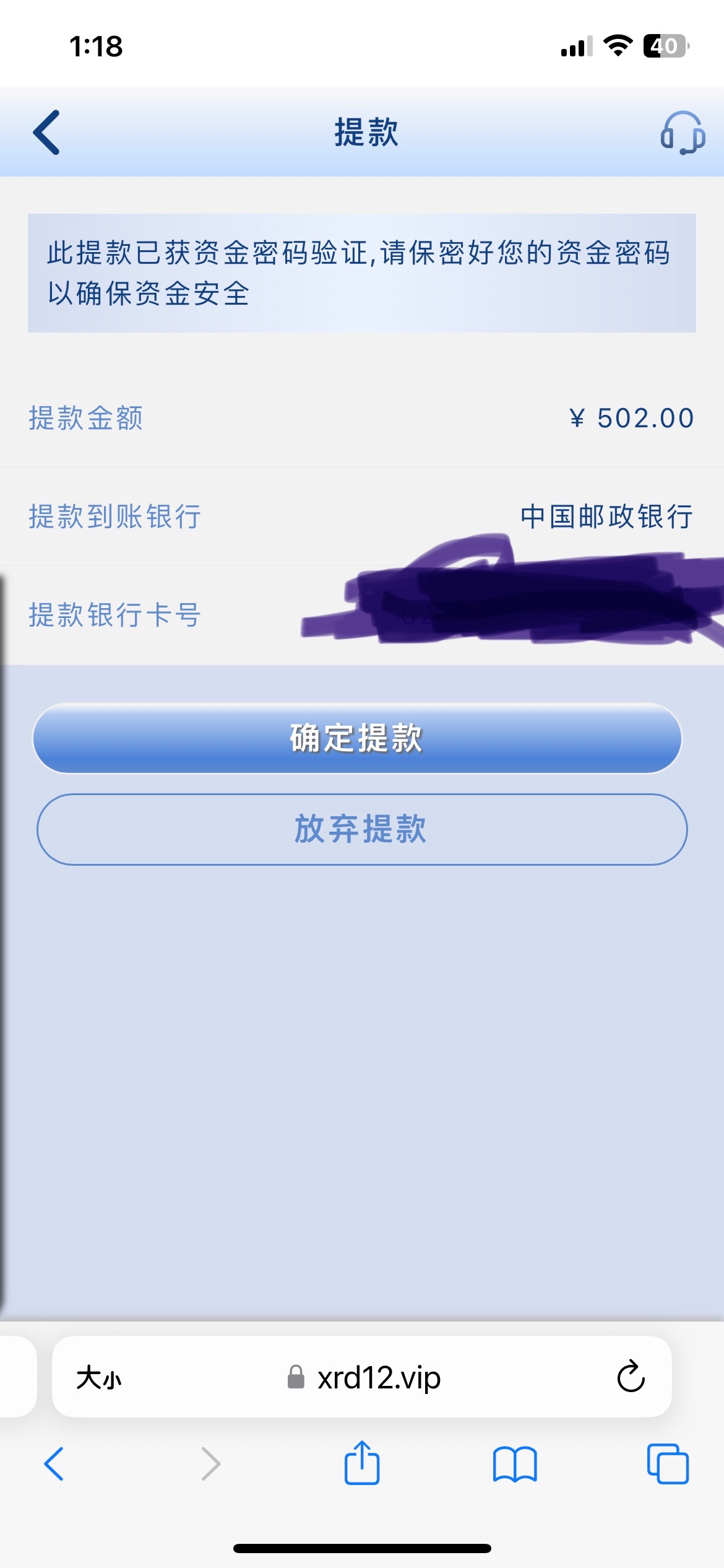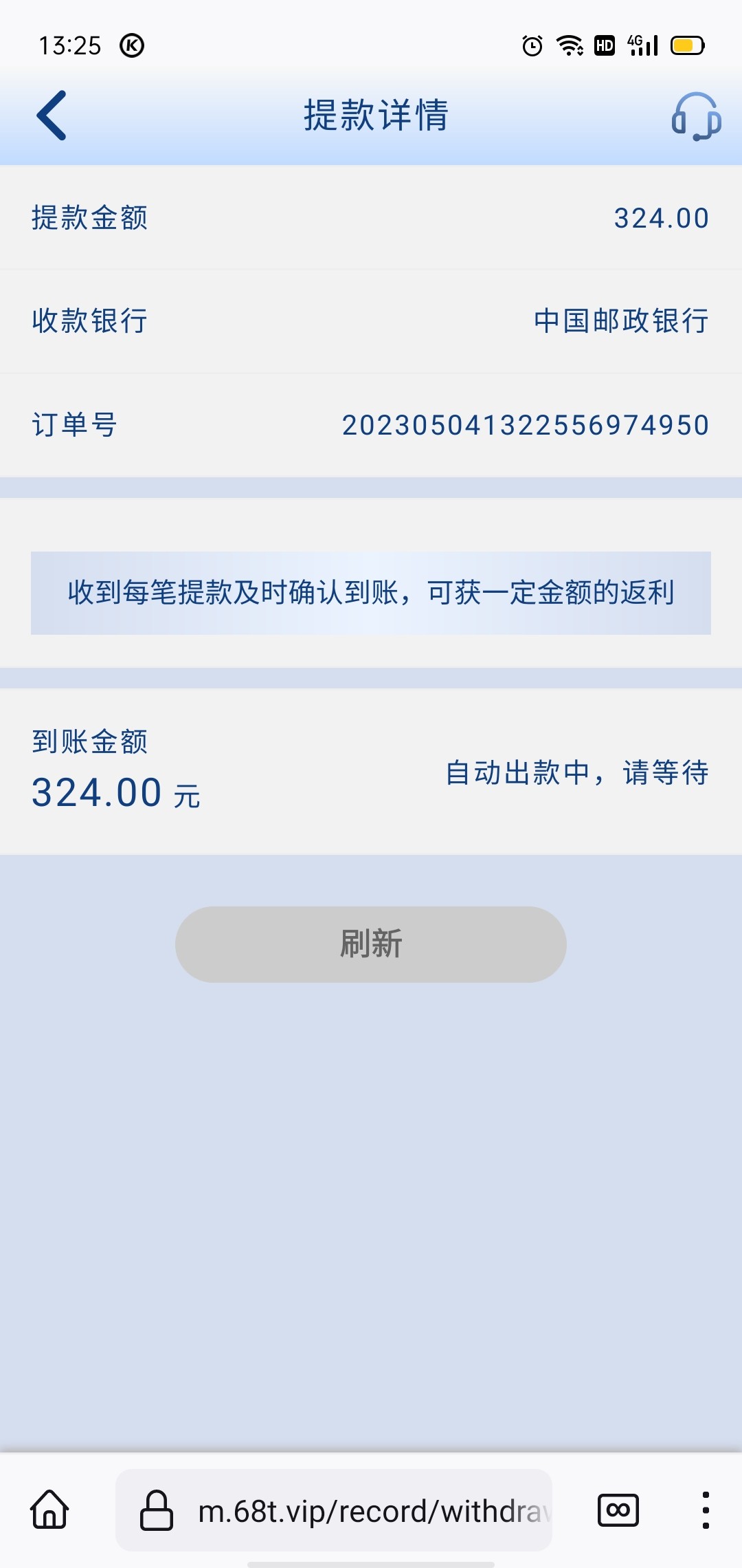 提现500。我看看到账不