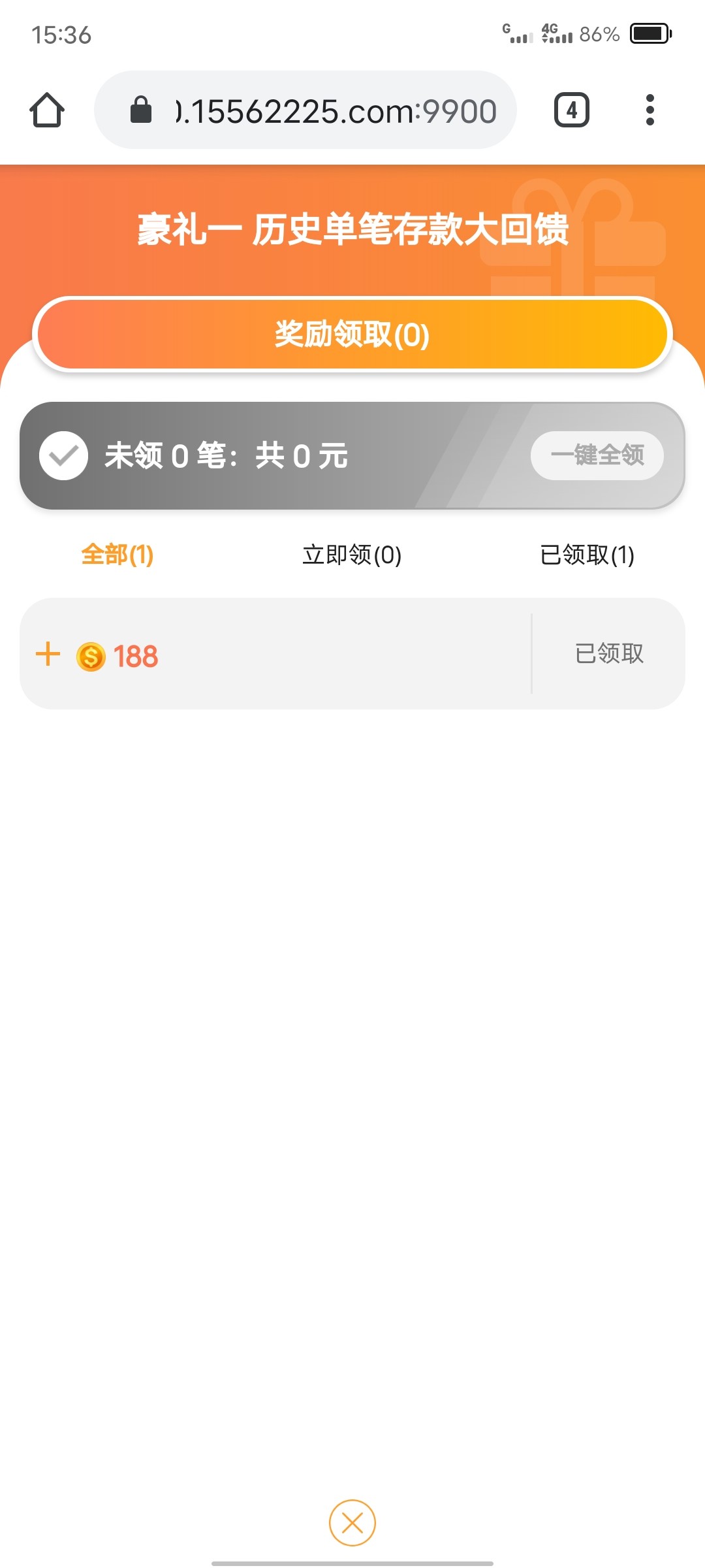 1556.com老账号送钱,给了我188,可以直接提款