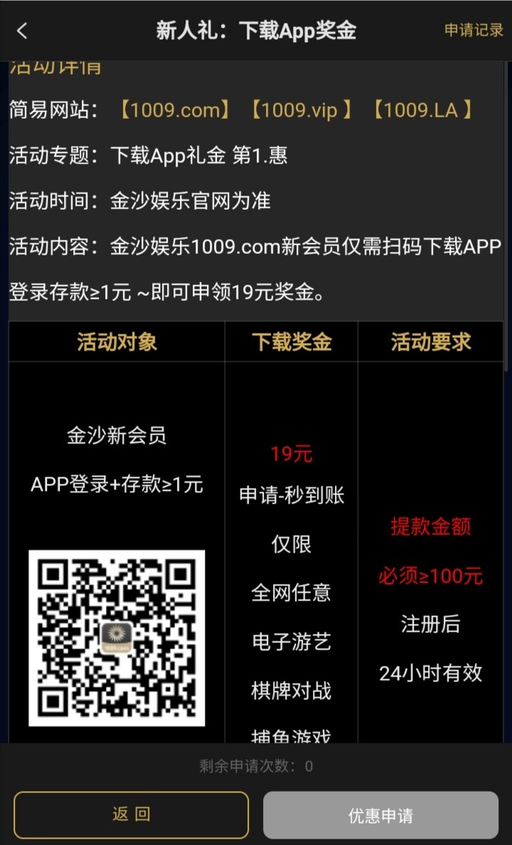 新用户注册下载APP绑卡优惠大厅自助申请19彩金,满100提款!活动具体看优惠活动。