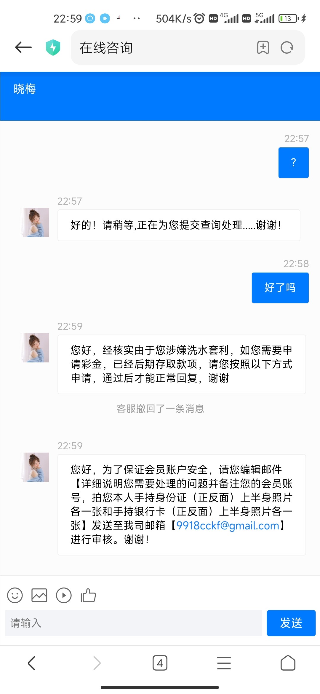 阳 第一次见这么恶心的台子 刚注册申请彩金就被黑了 提款也要手持 赶紧删帖吧