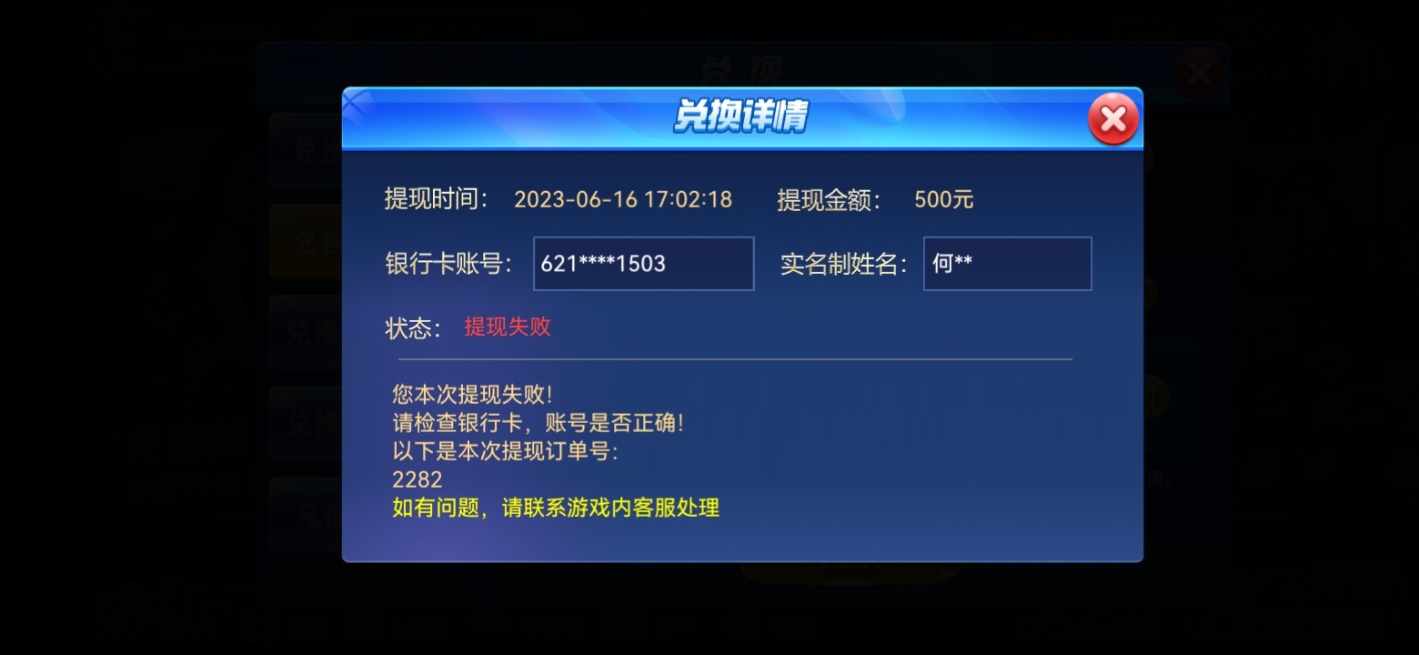 提现失败