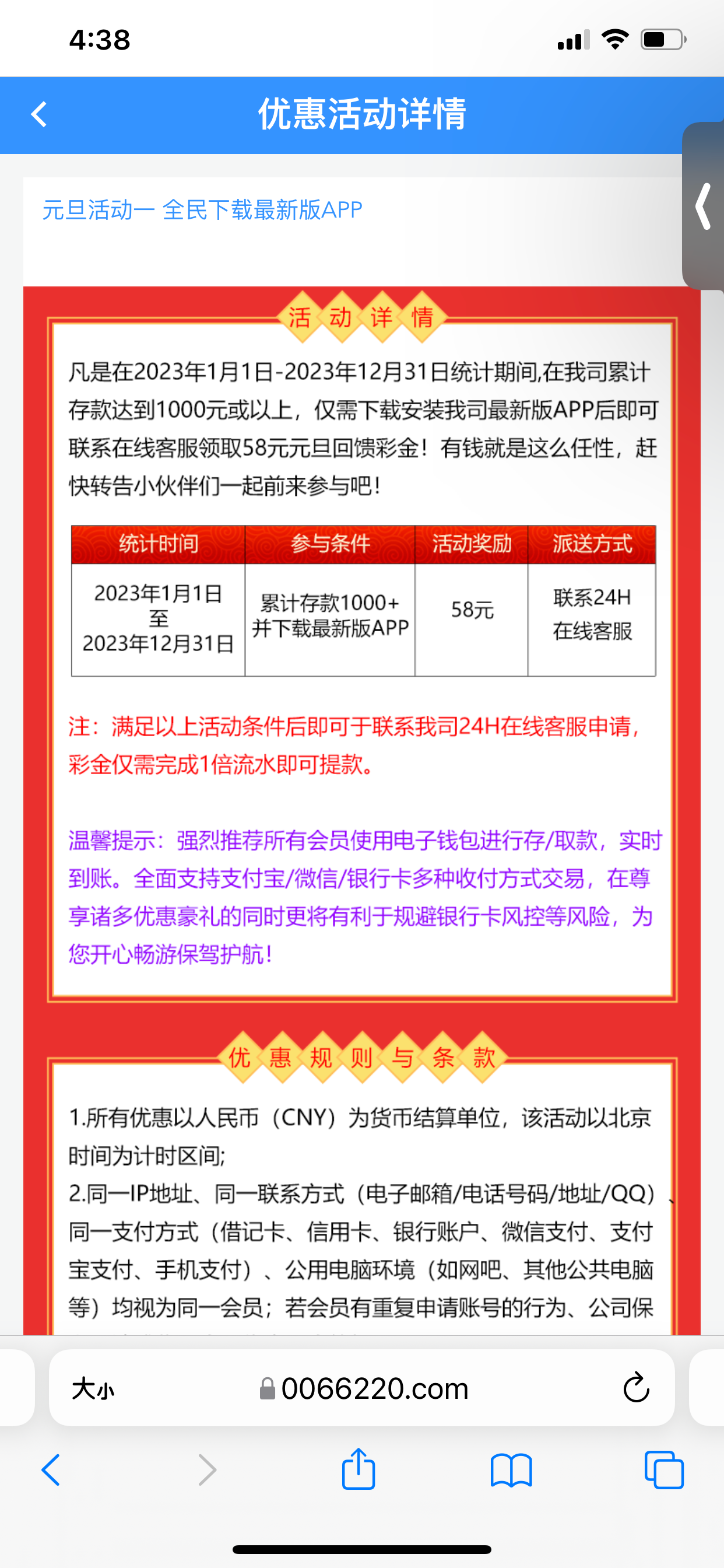 3360送58元旦 一年累计充值一千