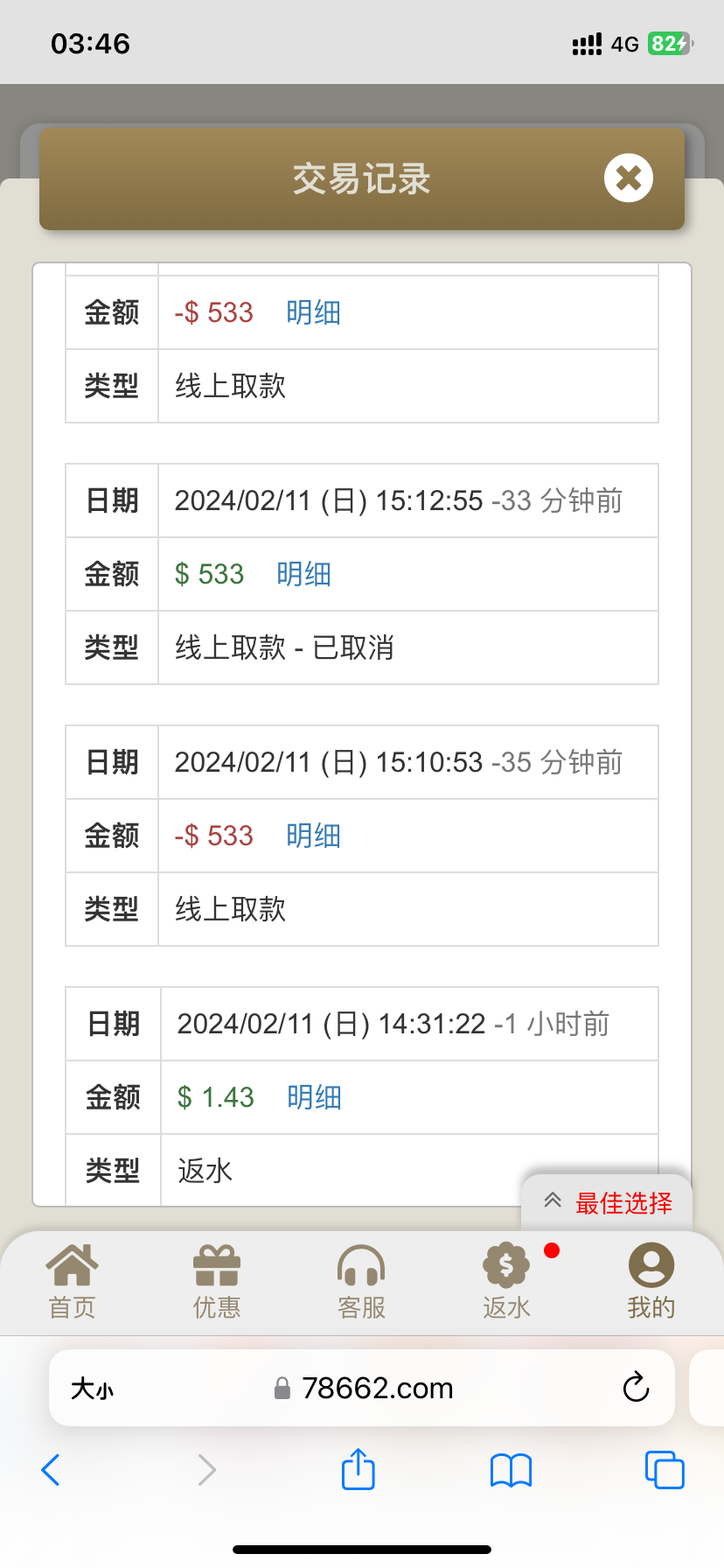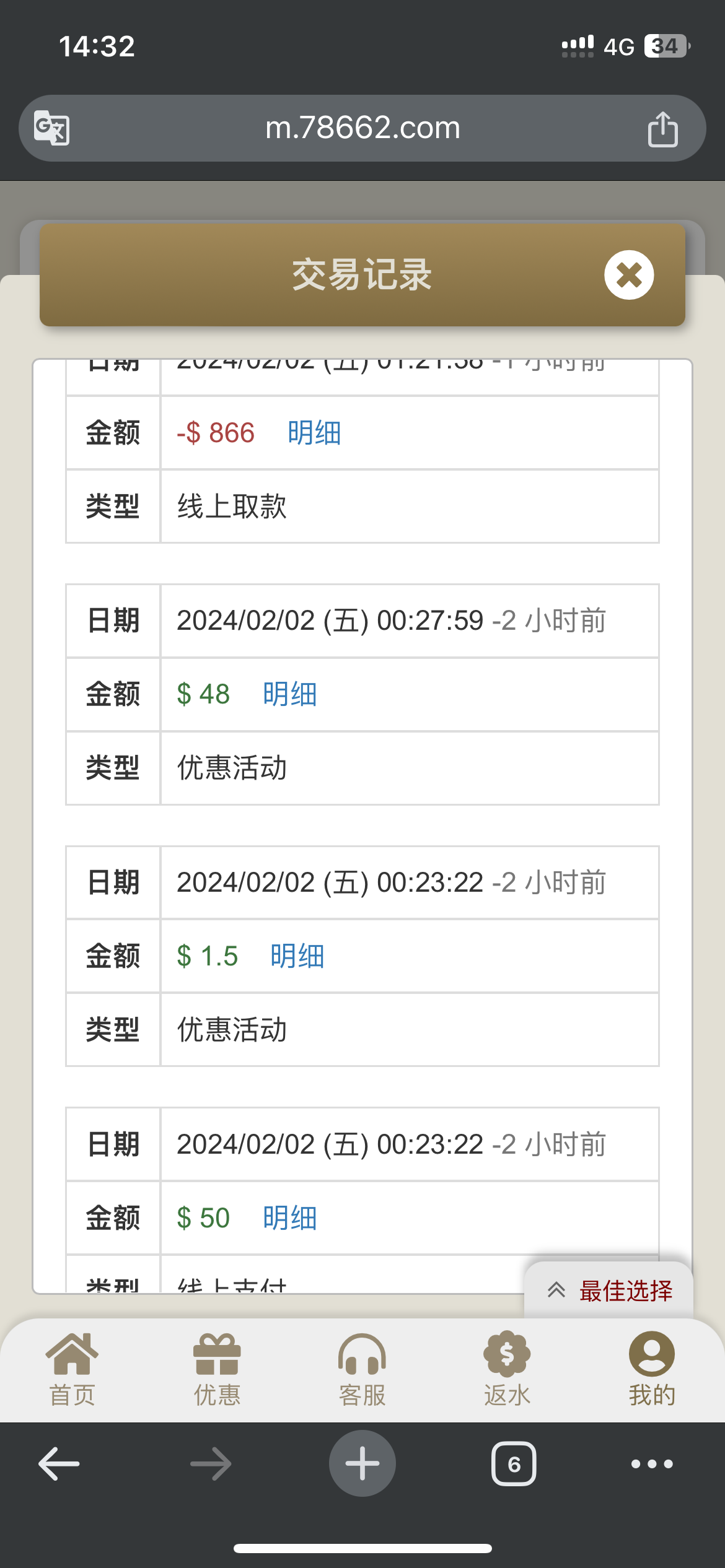 舒服前天玩50+48挂逼了,今天领了1块反水上500