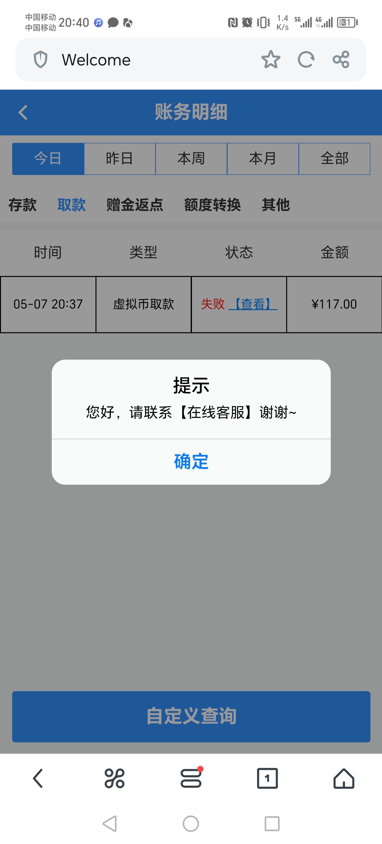 领了1块钱打到117提现黑了