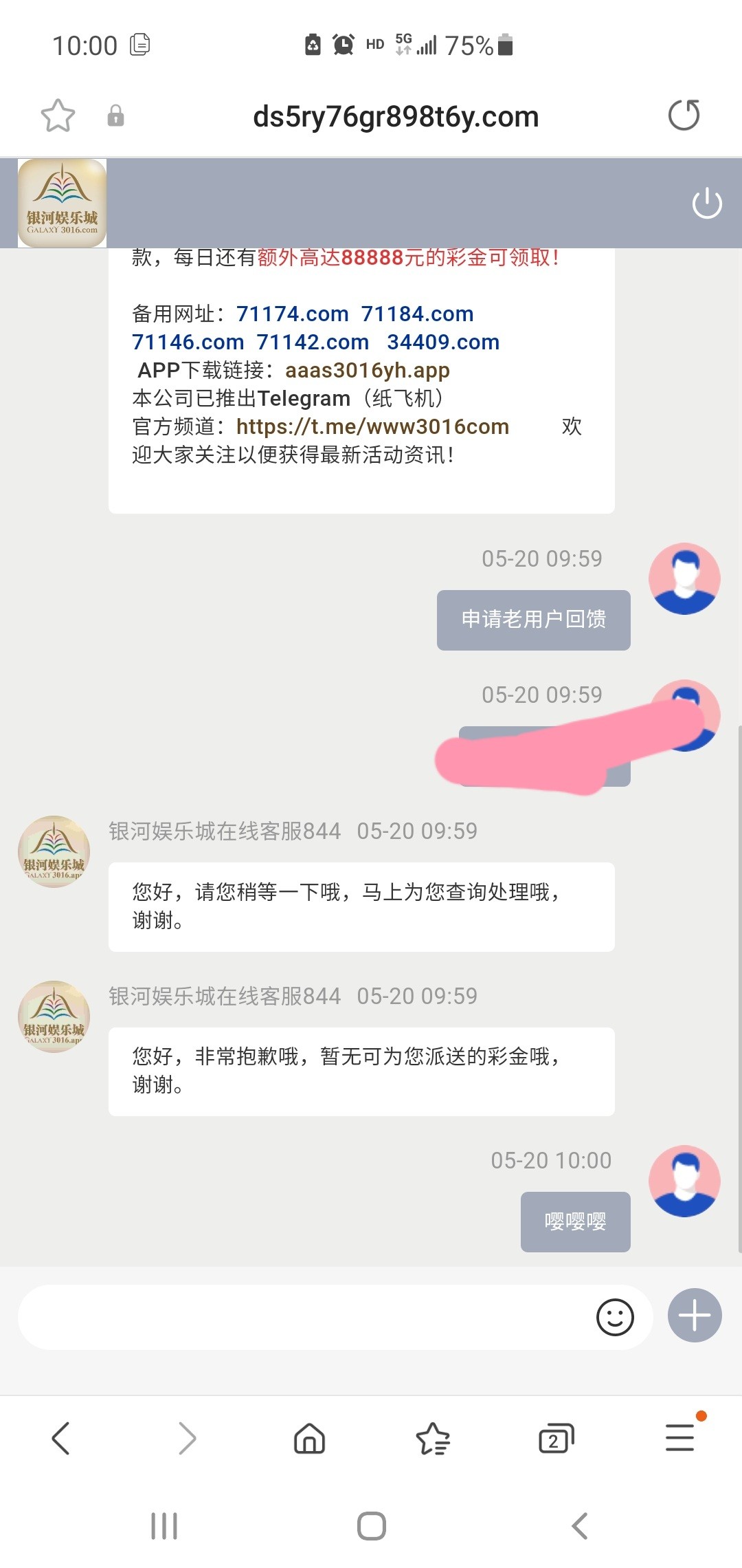 你说清楚是啥回馈啊。。。怎么找客服领?跟客服说啥?直接上去一句领取彩金?
