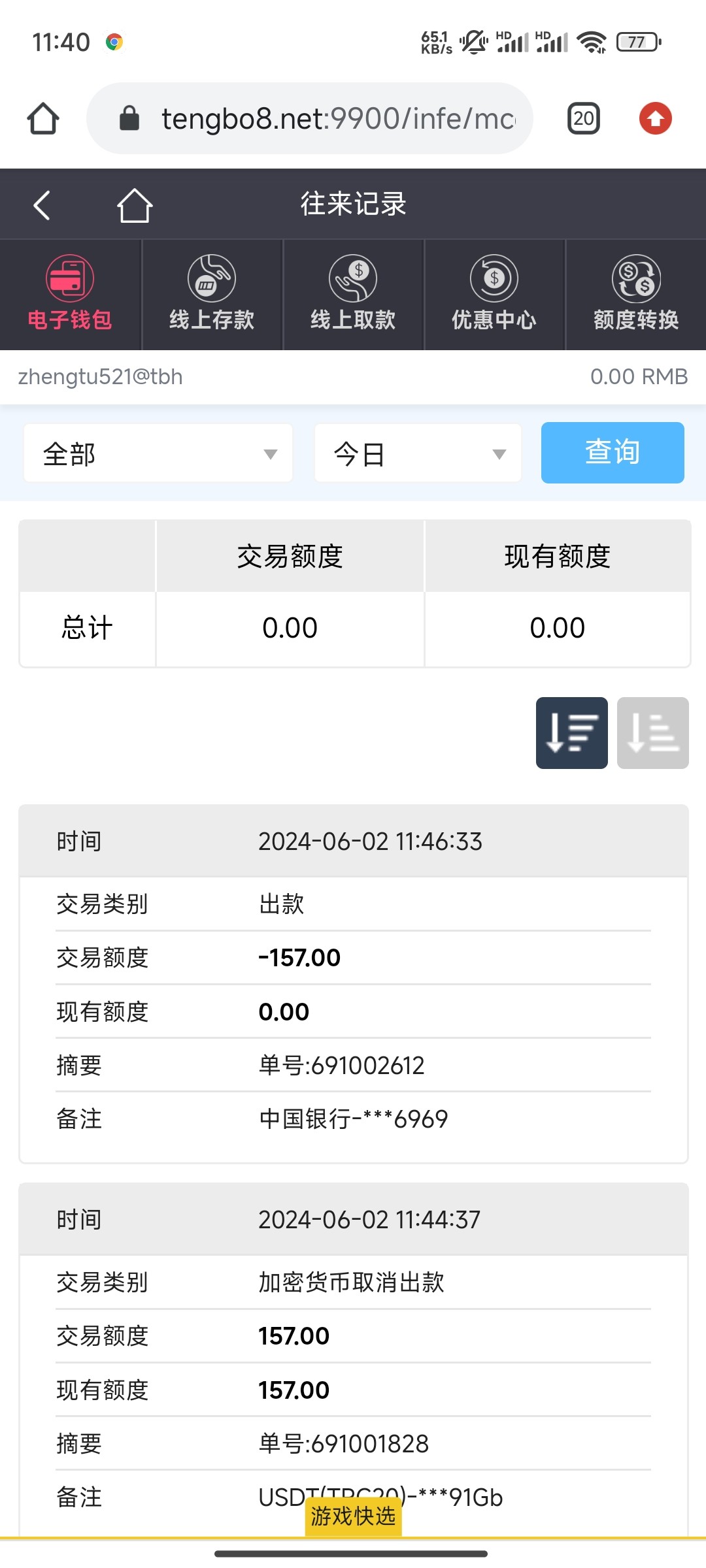 感谢昨晚提现的,到账157